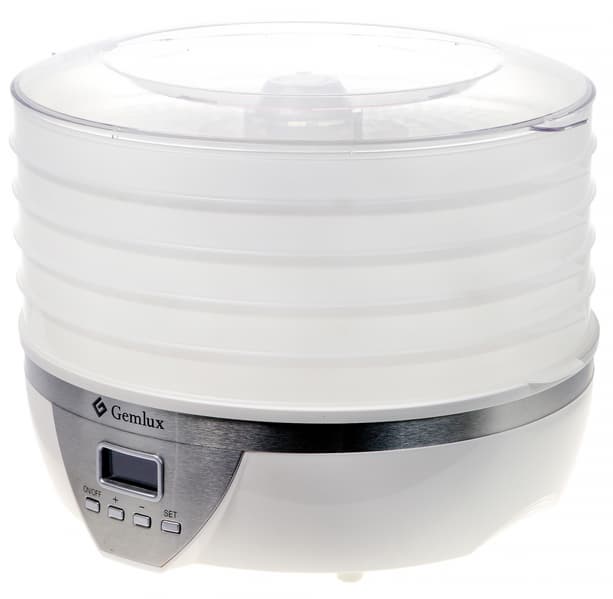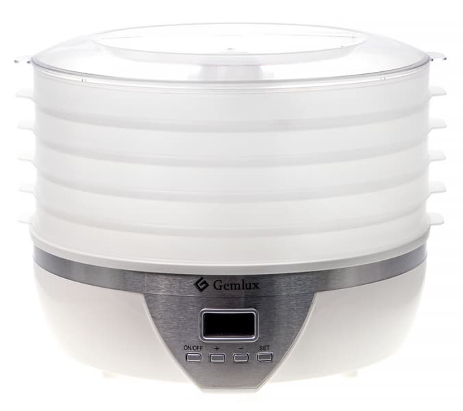 Сегодняшний гость нашей лаборатории — конвекционный дегидратор (сушилка для овощей и фруктов) GL-FD-01R компании Gemlux. Конвекционный — значит, воздух забирается снизу, нагревается с помощью тэнов и устремляется наверх, обдувая содержимое установленных друг на друга поддонов. Производитель давно нам знакомый и неплохо себя зарекомендовавший, да и сушилок подобных мы тестировали уже несметное количество. Прибор недорогой и совершенно стандартный, без «наворотов». Так что основная интрига этого тестирования — насколько хорошо устройство справляется со своей, в общем-то, единственной функцией.