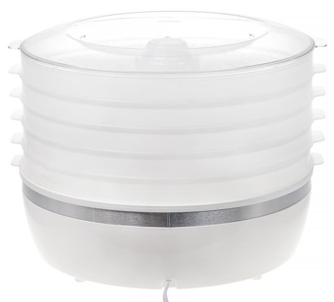 При этом нельзя не отметить удобство управления дегидратором и большой диапазон доступных температур, еще и с коротким шагом в 5 градусов. С учетом низкой цены прибор в целом признан нами неплохим и может быть рекомендован начинающим экспериментаторам в области дегидрации продуктов, а также тем, кто пользуется сушилкой нечасто — например, грибникам.