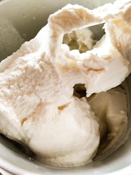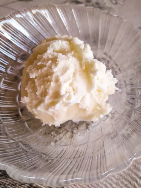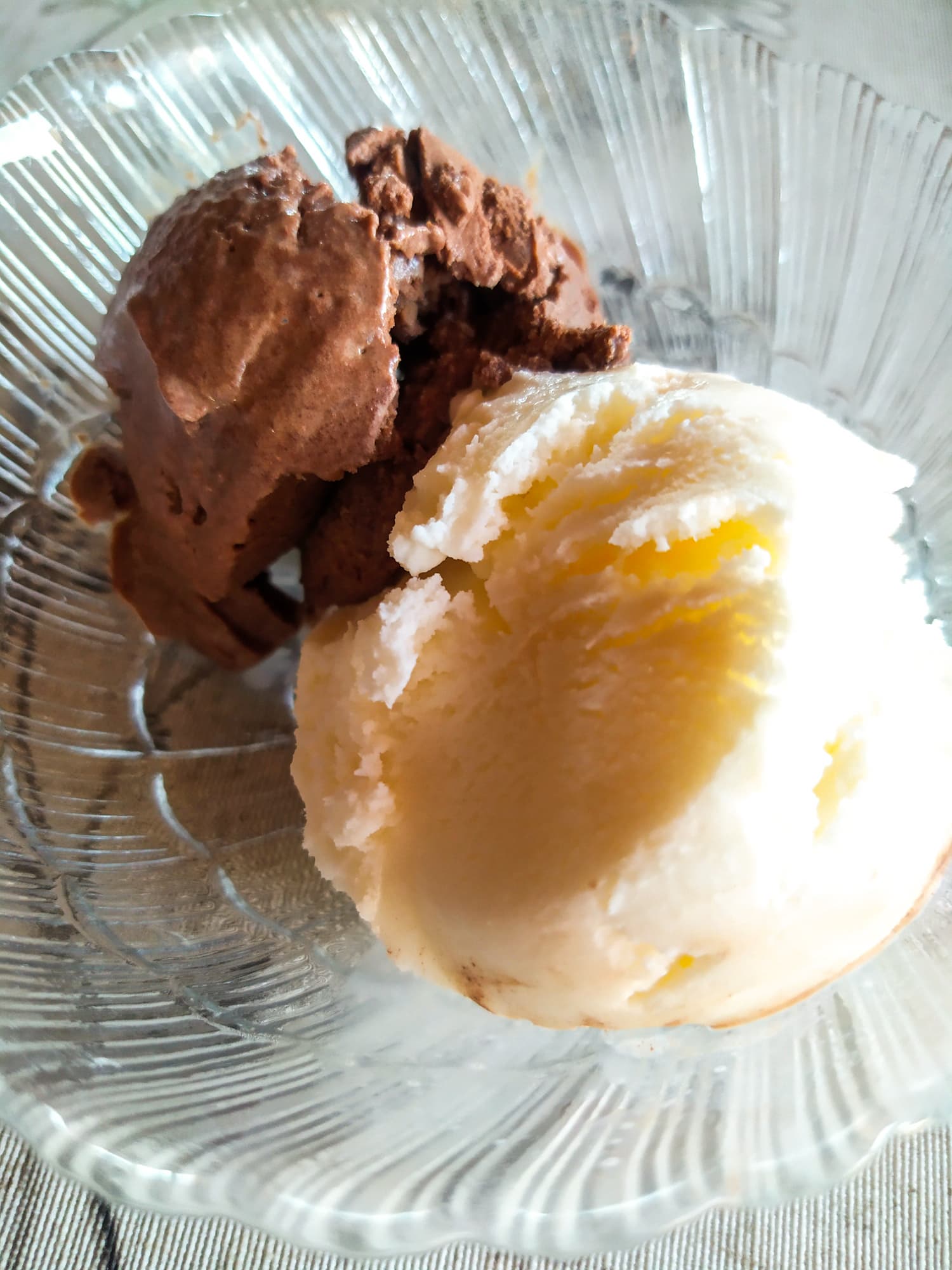 После морозилки стало возможным сделать шарик. Но теперь мороженое слишком твердое! Лучше, конечно, перед формовкой подержать контейнер в холодильнике или при комнатной температурой.
