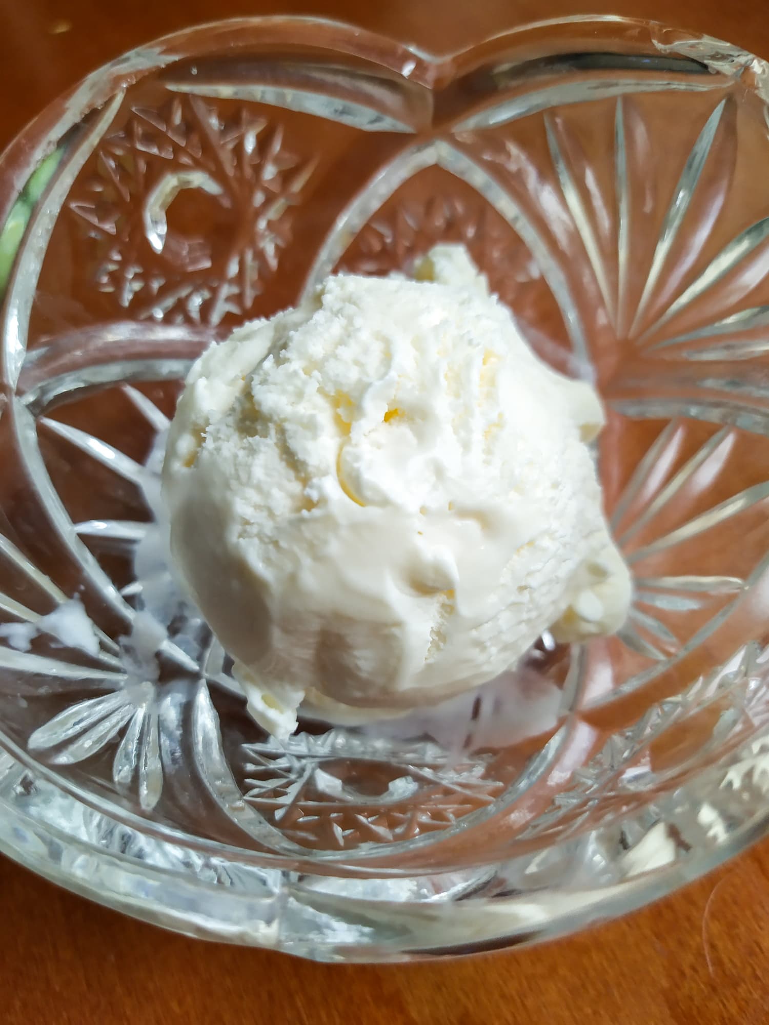 После морозилки и недолгого нахождения в контейнере при комнатной температуре мороженое стало легко поддаваться ложке. Классическая текстура пломбира, а тонкий сливочно-ванильный вкус — идеальное дополнение к кофе.