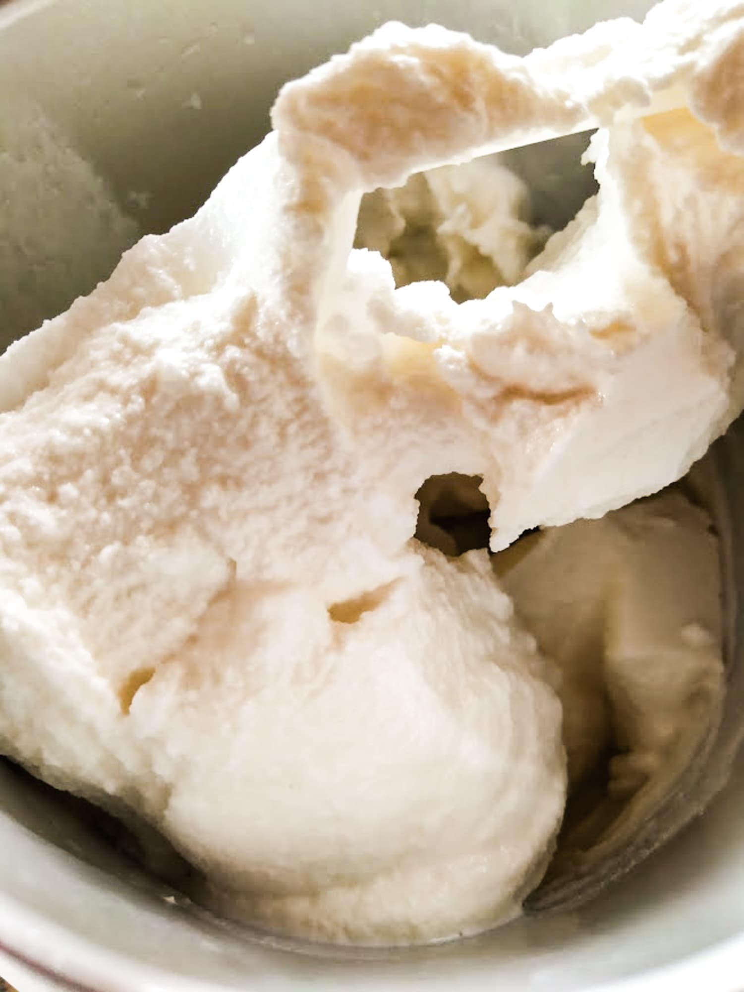 Мороженое получается мягкое, по консистенции ближе к крему и тает буквально мгновенно, так что для более привычной текстуры и формовки классическими шариками его лучше отправить на дозакаливание в морозилку. Стоит иметь в виду, что чем менее жирная смесь, тем ощутимее в мороженом крупинки. Как ни странно, мы заметили, что после отдыха в морозилке они почти исчезали.