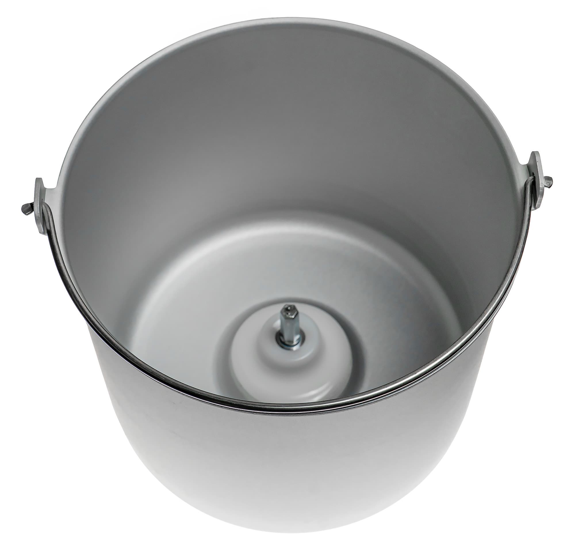 Двухлитровая съемная чаша для мороженого — алюминиевое ведерко с ручкой. Она просто ставится в предназначенное для нее углубление в корпусе и вынимается за ручку. В центре — штырек, на который устанавливается мешалка. При извлечении чаши даже из выключенного прибора металл кажется очень холодным.