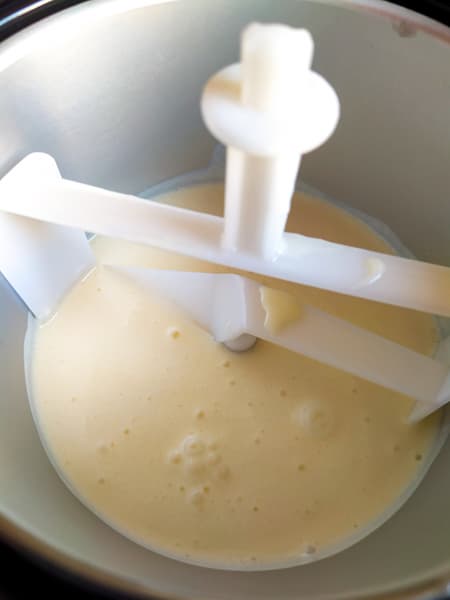 Через 15 минут в мороженице смесь загустела, но на дне еще была жидкость, которая упорно не хотела замораживаться.
