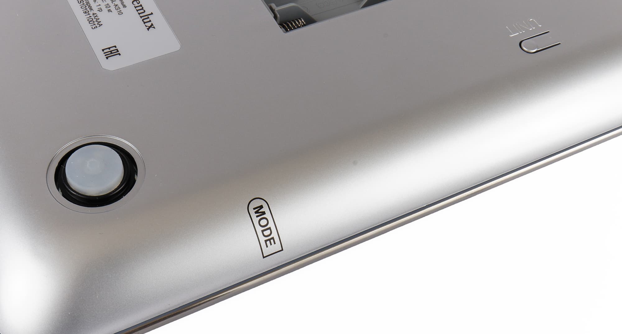 На нижней панели прибора есть также кнопка Unit, но ее нажатие не вызывает какого-либо эффекта: она не снабжена сенсором. Вероятно, это атавизм, перекочевавший на корпус наших весов из другой модели.