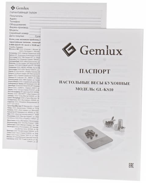 В комплект весов входит также гарантийный талон со списком авторизованных производителем сервис-центров.