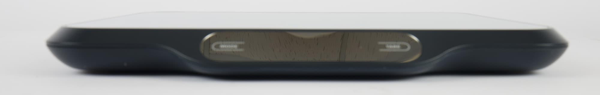 Размер платформы для взвешивания, изготовленной из нержавеющей стали — без малого 22×30 см. Спереди перед платформой выступает электронный дисплей с двумя сенсорными кнопками. Покрытие дисплея зеркальное, а значит, отпечатки пальцев и прочую грязь он будет собирать более чем успешно.