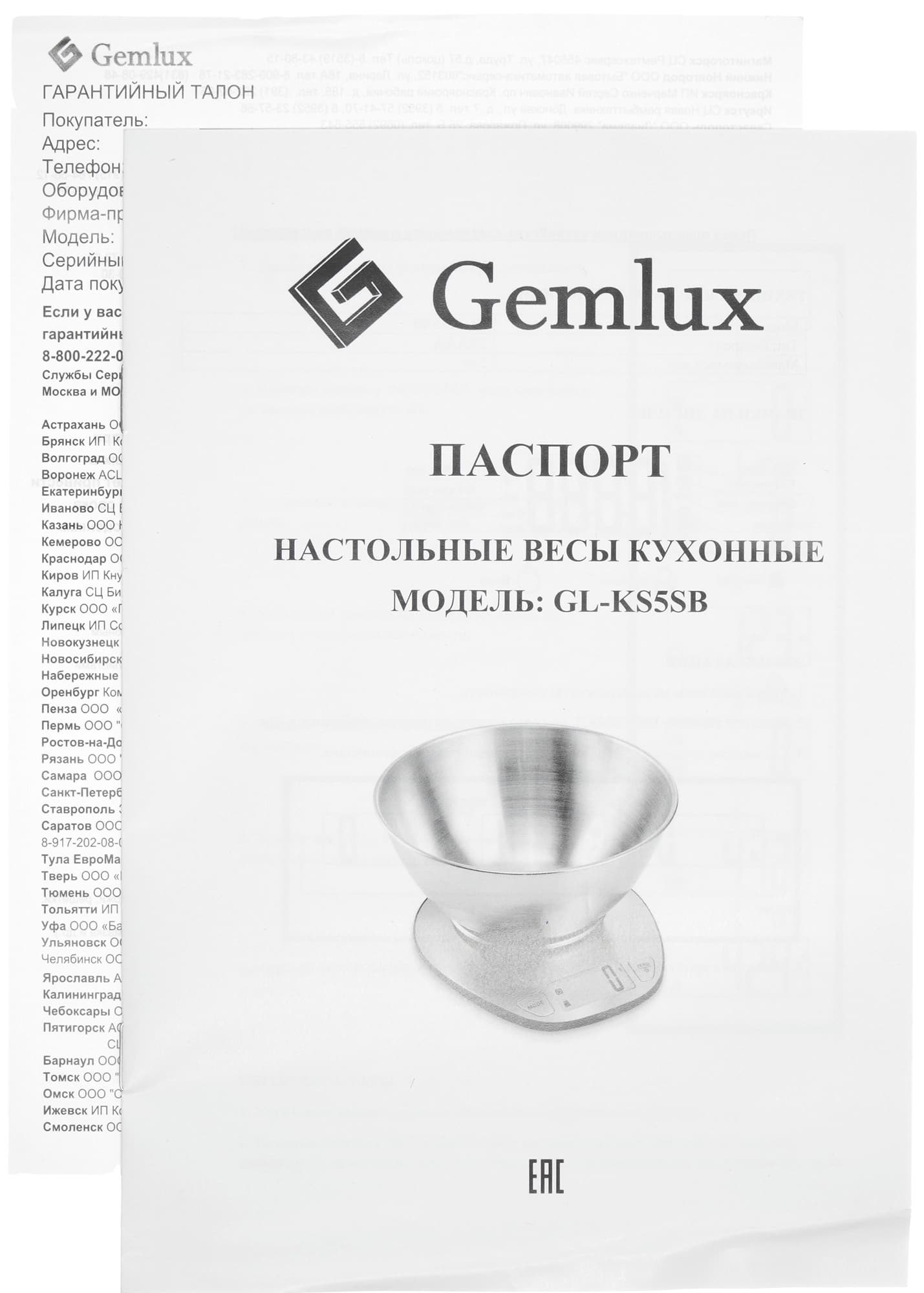 В комплект весов входит также гарантийный талон со списком авторизованных производителем сервис-центров.