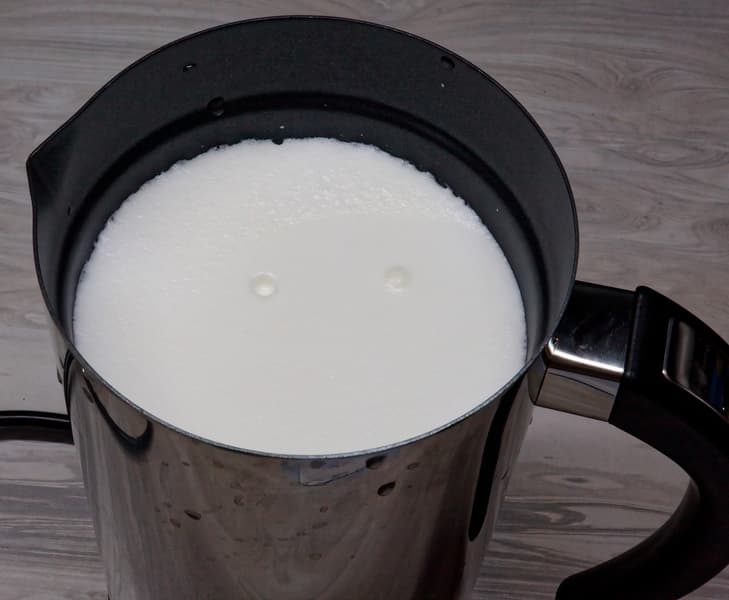 Результат — большое количество холодной молочной пены (но все же чуть меньше, чем при вспенивании с подогревом).