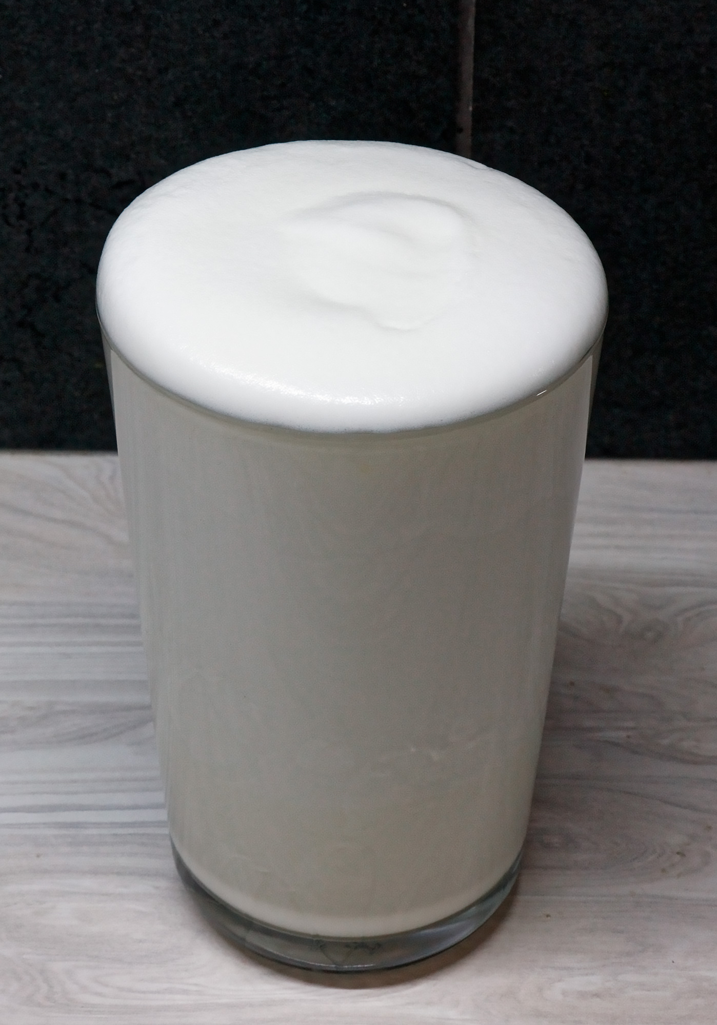 Мы для тестов вооружились молоком с жирностью 3,2% и содержанием белка 3%. Это довольно хороший (но не самый лучший) из доступных вариантов, однако у нас и не было цели подобрать идеальное молоко: из наилучшего молока проще получить пену, а у нас не было цели не упрощать задачу нашему молочнику.
