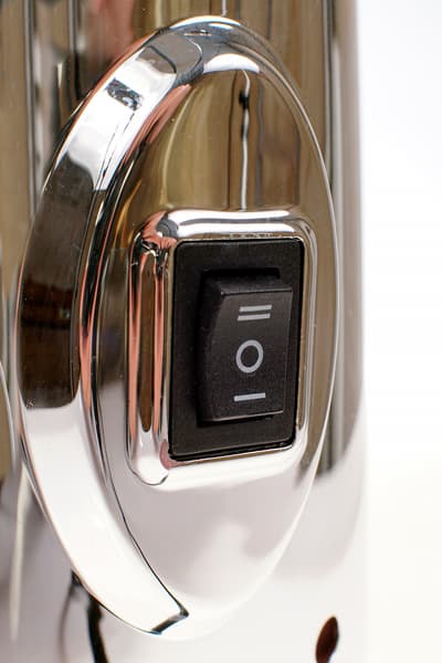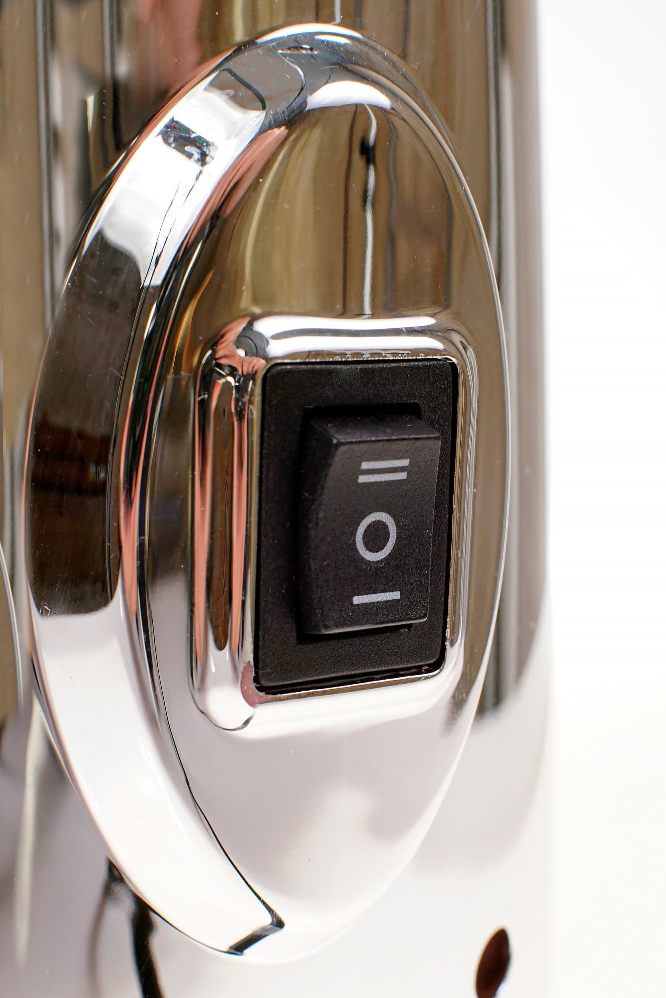 Вертикальная клавиша «Вкл.» двигается вверх и вниз от нейтрального положения и переводит миксер в один из двух режимов — либо менее мощный (клавиша вниз), либо более (клавиша вверх).