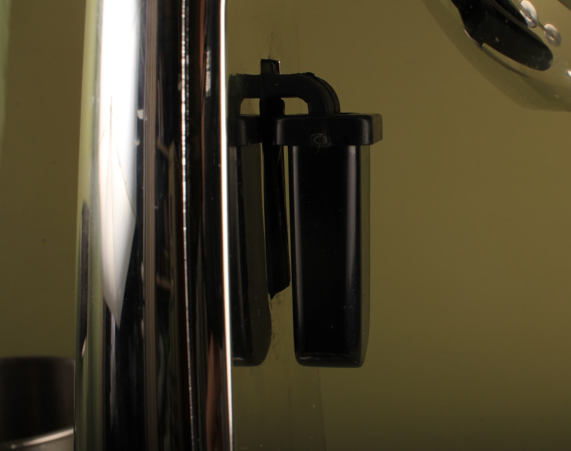 Черная деталь непонятного первоначально назначения оказалась блокиратором. При надевании ее на клипсу крепления стакана она блокирует язычок клипсы, и коктейли можно взбивать в нештатных емкостях.
