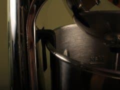 Снять с клипсы полный стакан коктейля оказалось проще простого. Даже при небольшом наклоне ничего из стакана не проливается, если делать это двумя руками: одной снимать, другой придерживать стойку. Молочный коктейль, попавший на клипсу, стекает на подставку, а не на стол, а с венчика, как выяснилось, вообще ничего не капает, если прибор не трясти.