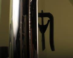 Стойка для стакана сложной конструкции явно вдохновлена фантастическим фильмом: мягкие обводы, ни одного острого угла, обтекаемая головка в форме яйца, слегка расширяющаяся книзу стойка и раздвоенное основание. Общее ощущение — мы принесли на кухню не то маленький космический корабль, не то инопланетянина.