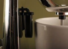Между ножек основания может стоять стакан, когда прибор не используется. Кстати, несмотря на раздвоенное основание, прибор не очень устойчив, когда стакан пуст. Он не скользит, так как на нижней части стойки есть четыре присоски, но есть риск опрокидывания: задняя часть немного перевешивает.