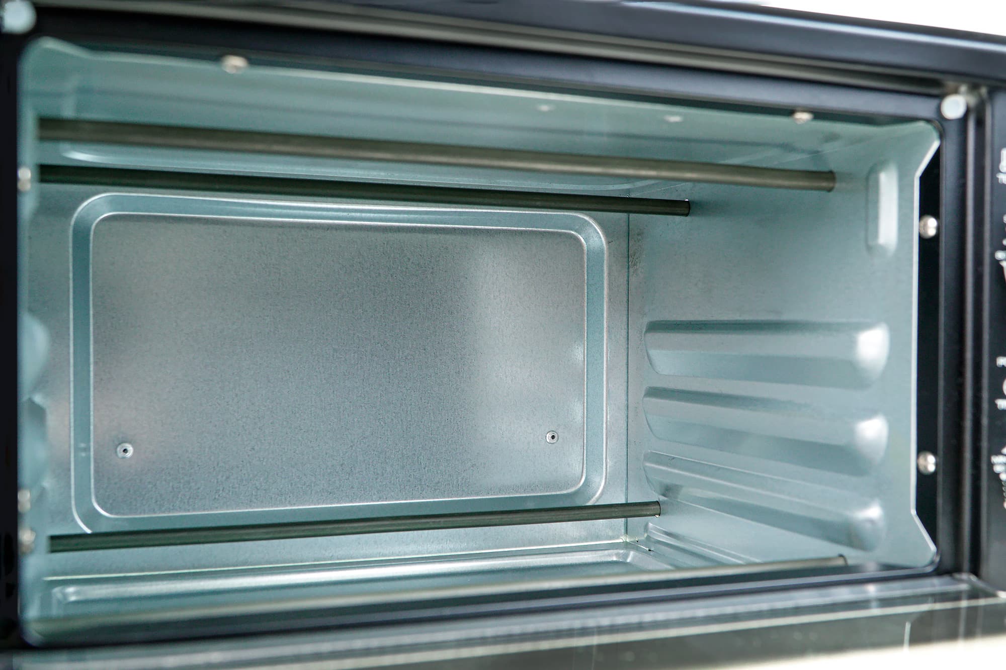 Внутри стенки духовки из стали с пазами для крепления решетки в трех положениях. Тэнов четыре, два сверху и два снизу. Они прямые и разнесены довольно широко друг от друга.