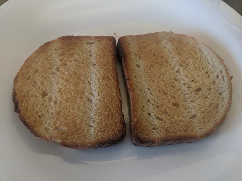 Нижняя сторона тостов по степени зажаренности не отличалась от верхней — за исключением, конечно, следов от решетки.
