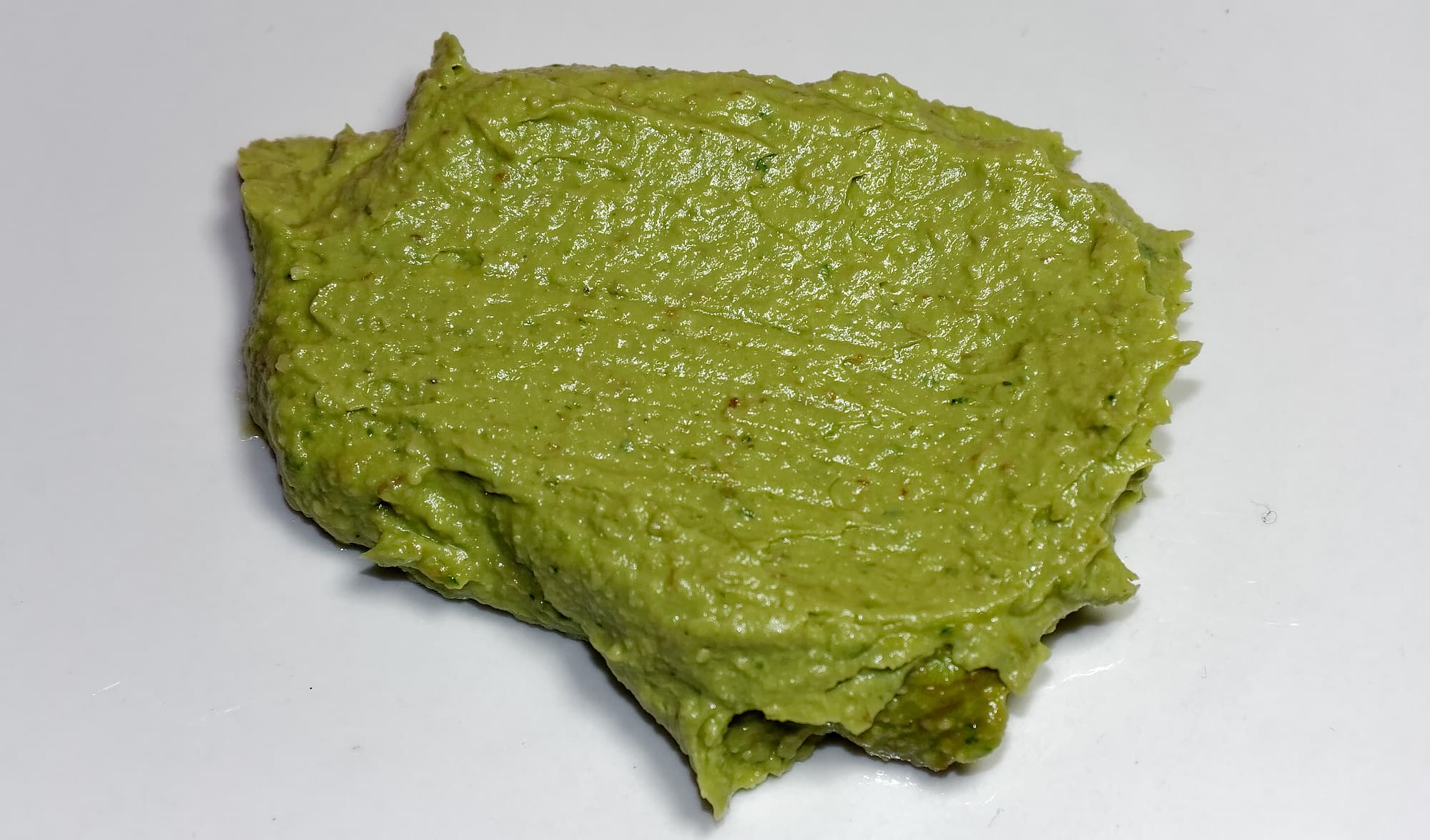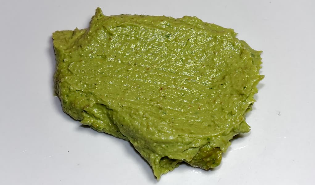 Как и в случае с авокадным песто, поначалу ножи блендера проворачивались, а процесс измельчения шел не слишком быстро. Однако через некоторое время в нижней части кувшина образовалось достаточное количество перемолотых ингредиентов, и процесс пошел лучше. Вскоре мы получили однородную смесь, в которую добавили несколько кусочков сливочного масла (чтобы паштет загустел в холодильнике).