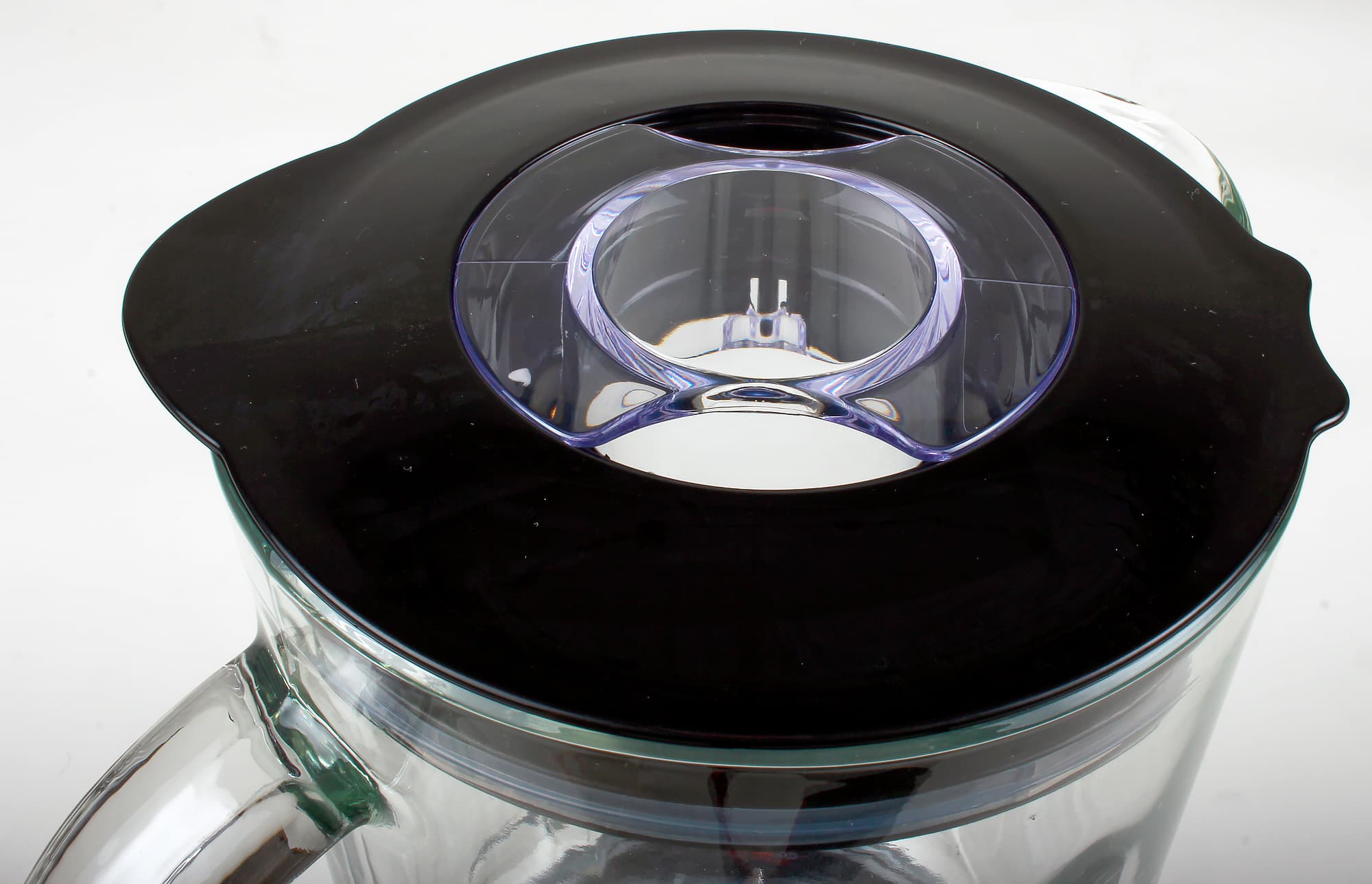 Крышка кувшина сделана из черного пластика и оснащена дополнительной мини-крышкой, позволяющей добавлять ингредиенты непосредственно во время работы блендера. Мини-крышка свободно снимается и устанавливается обратно. На своем месте она фиксируется путем поворота на несколько градусов по часовой стрелке, а при большем усилии — защелкивается и перестает поддаваться (без приложения соответствующего усилия в обратном направлении).