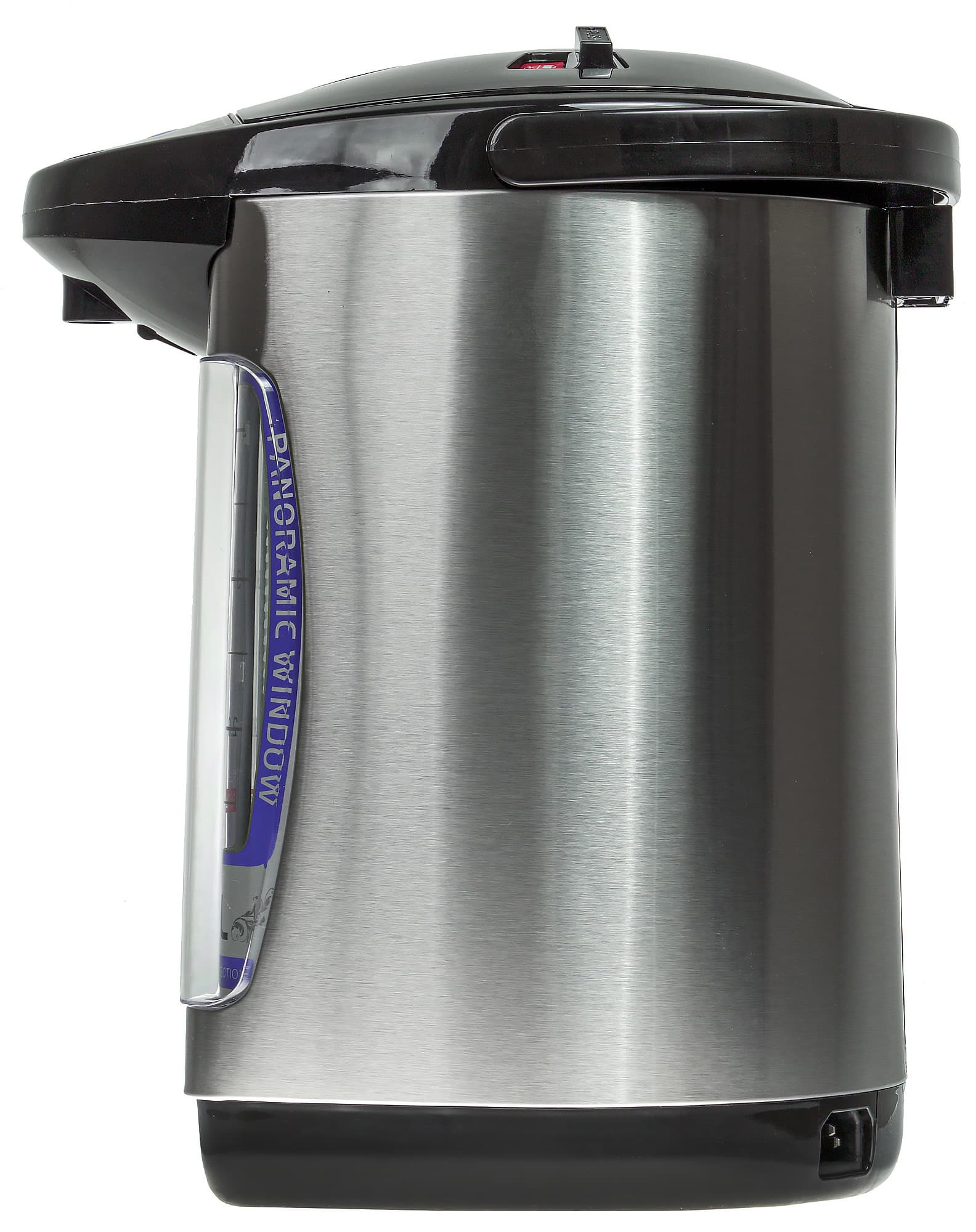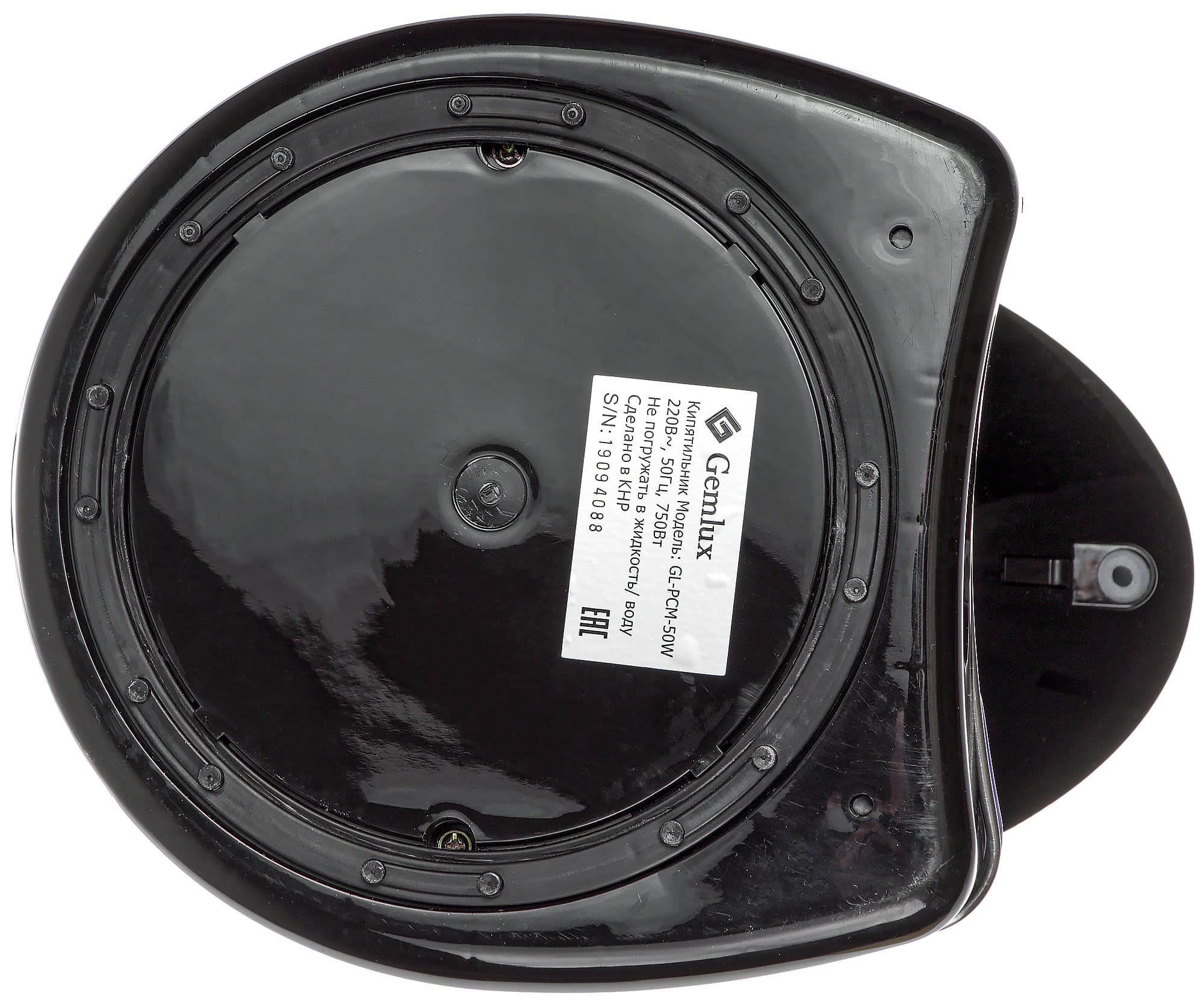 Снизу находится наклейка с технической информацией и вращающееся пластиковое кольцо, позволяющее без труда поворачивать термопот в любую сторону.
