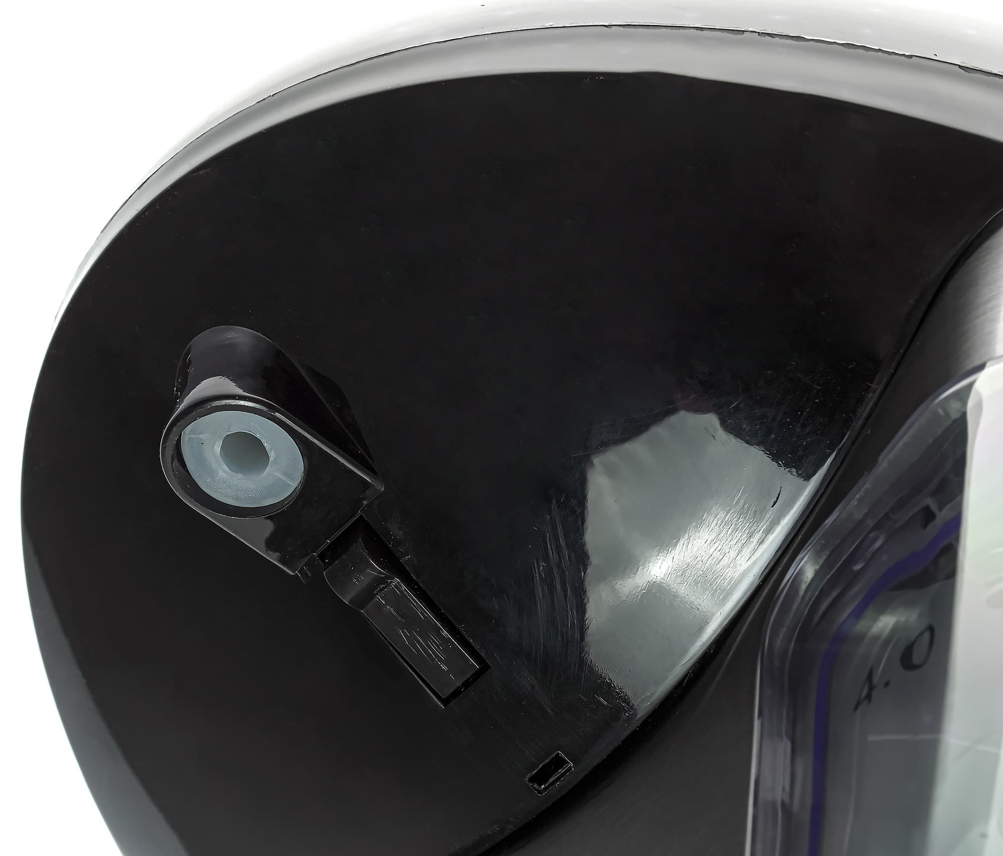 Сама крышка выглядит довольно толстой: под внутренней частью прячется помпа, а на краю мы видим механическую пластиковую защелку.