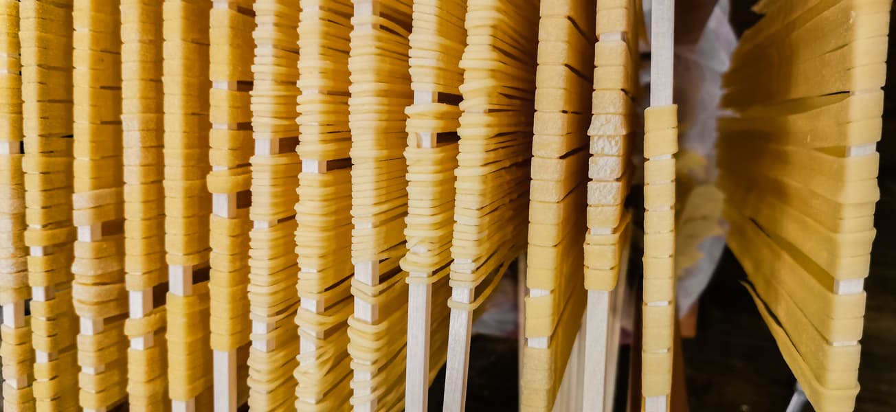 Лапшу высушили, подвесив на шпажках.