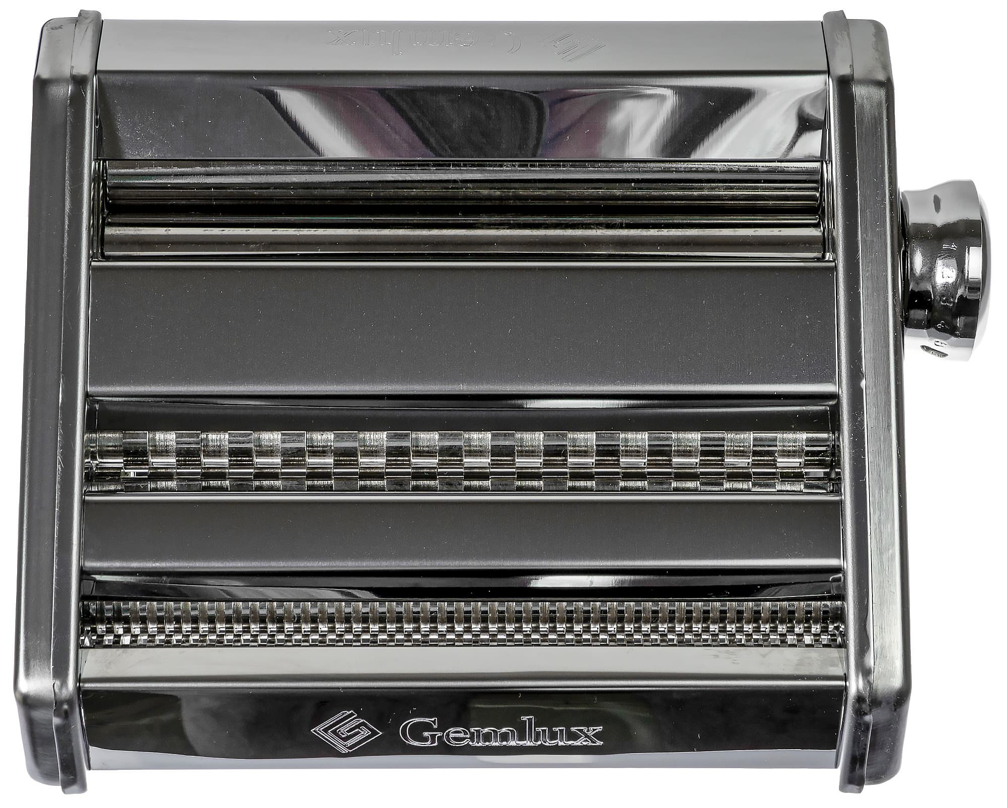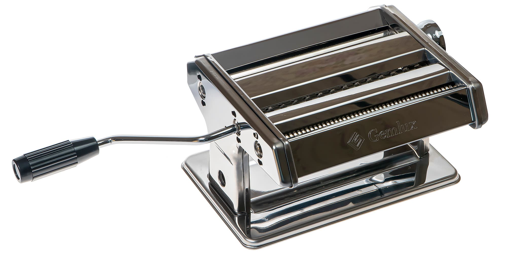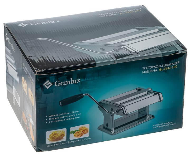 Gemlux GL-PMZ-180 изготовлена из хромированной стали. Конструкция представляет из себя три ролика (один для раскатки, два для нарезки), приводящиеся в движение ручкой. Расстояние между валиками и платформой, на которой стоит прибор, составляет 85 мм.