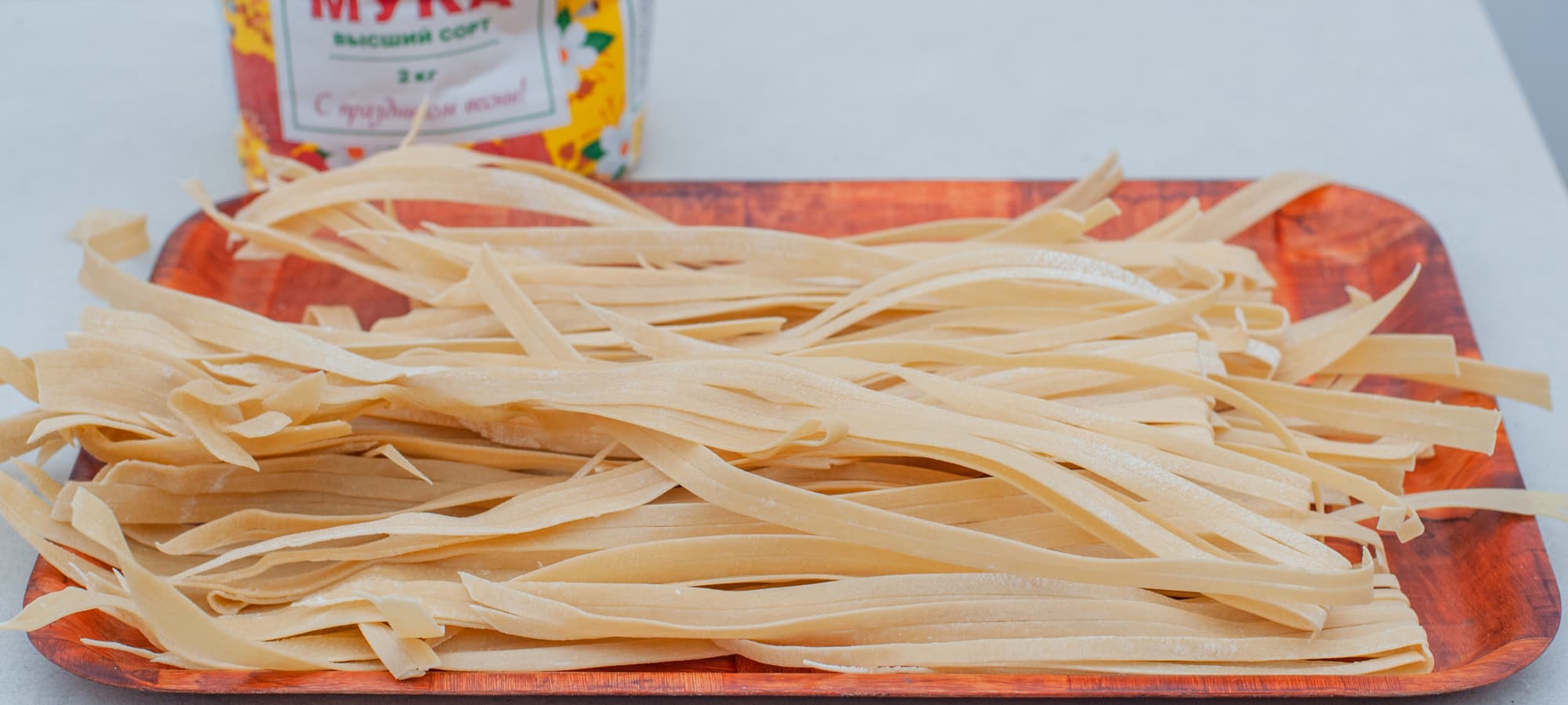 Широкая яичная лапша из пшеничной муки мягких сортов