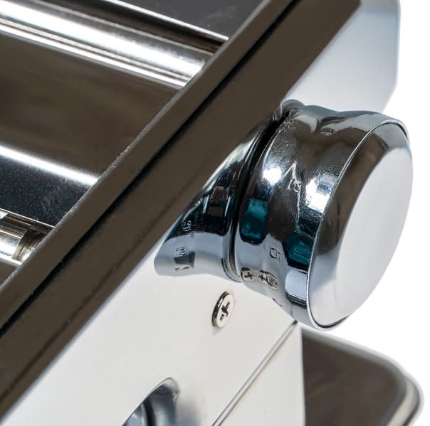 Самый дальний валик — для раскатки теста, посередине — для нарезки феттуччини (лапша шириной 6,25 мм), ближний — для нарезки тальолини (лапша шириной 2 мм). Установка толщины раскатываемого теста происходит с помощью регулятора.