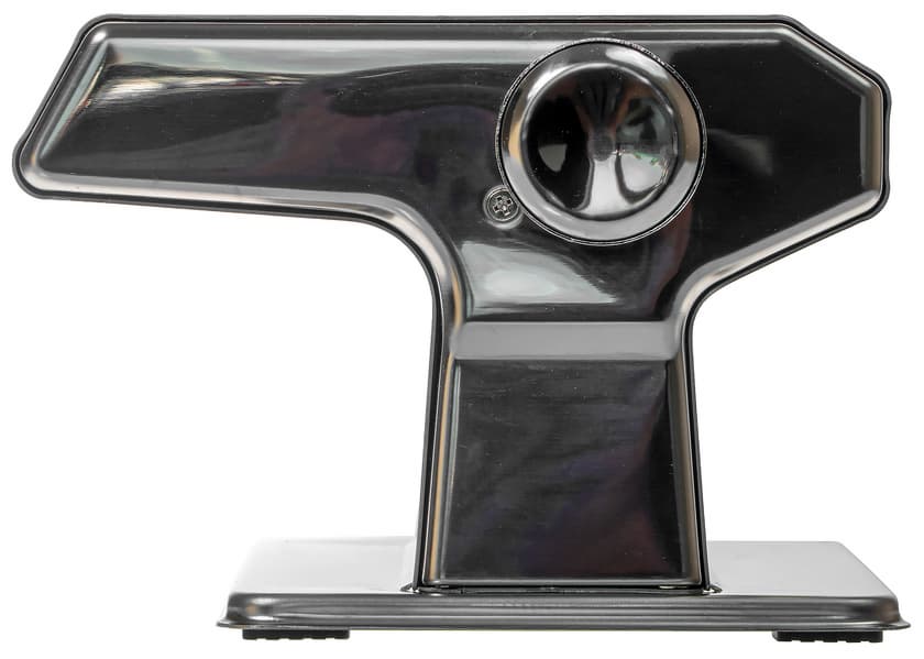 Для того чтобы закрепить прибор на столе, в комплект входит струбцина (зажим). Ее нужно вставить в круглое отверстие снизу сбоку прибора. После того, как прибор закреплен на столе, привести в движение ролики можно, вставив ручку в отверстие напротив нужного ролика.