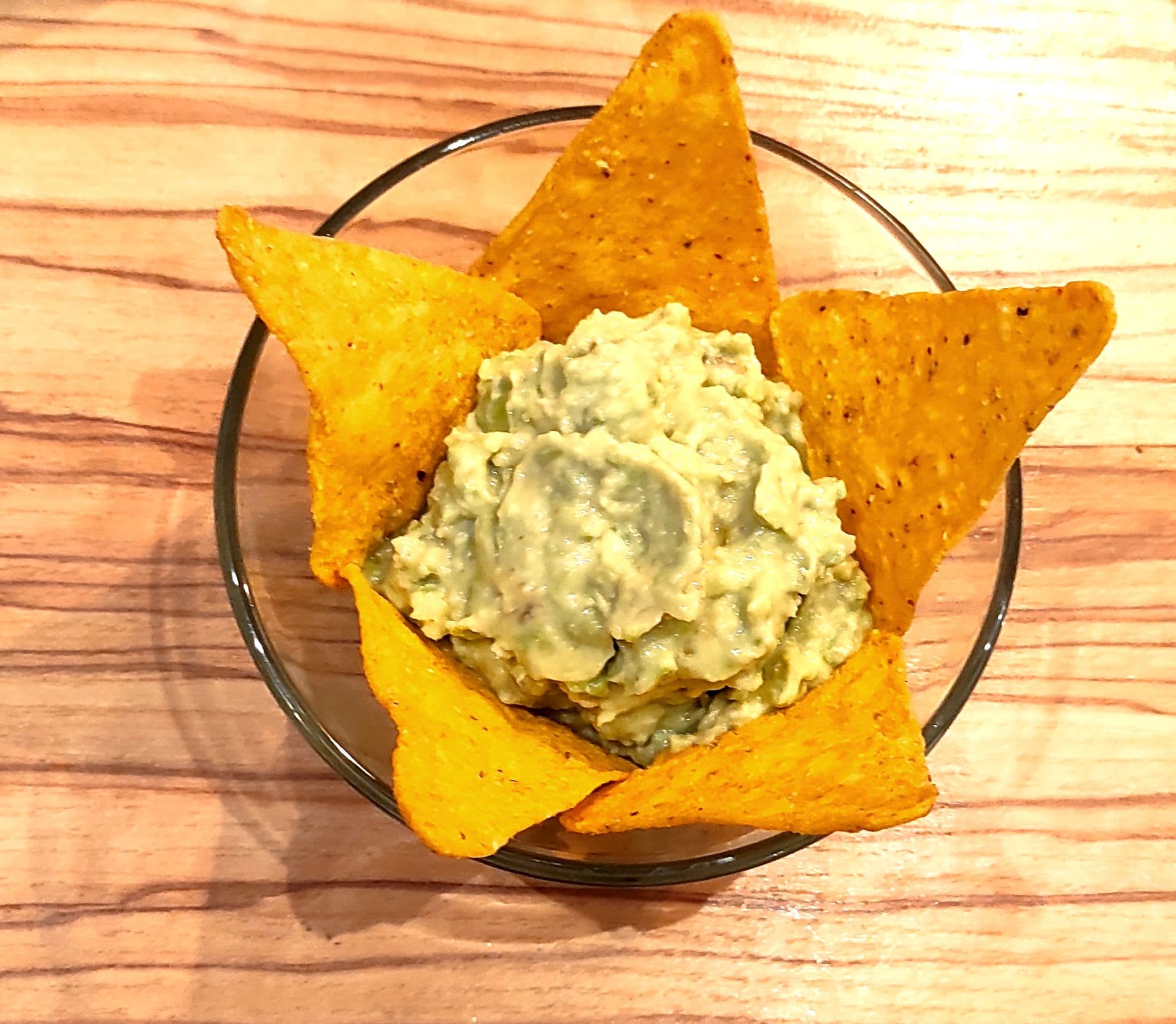 Три небольших спелых авокадо мы очистили и нарезали кусочками крупнее, чем просила инструкция — примерно 2,5 см. Добавили лимонный сок и чуточку воды, оливковое масло, мелкие зубчики чеснока и соль. Из-за того, что нам хотелось получить густой соус, блендеру было сложно без достаточного количества жидкости, но он справился. Мы делали заходы по 10 секунд, затем встряхивали стакан, и менее чем за минуту нежный соус гуакамоле был готов. В сочетании с кукурузными чипсами начос это прекрасная мексиканская закуска.