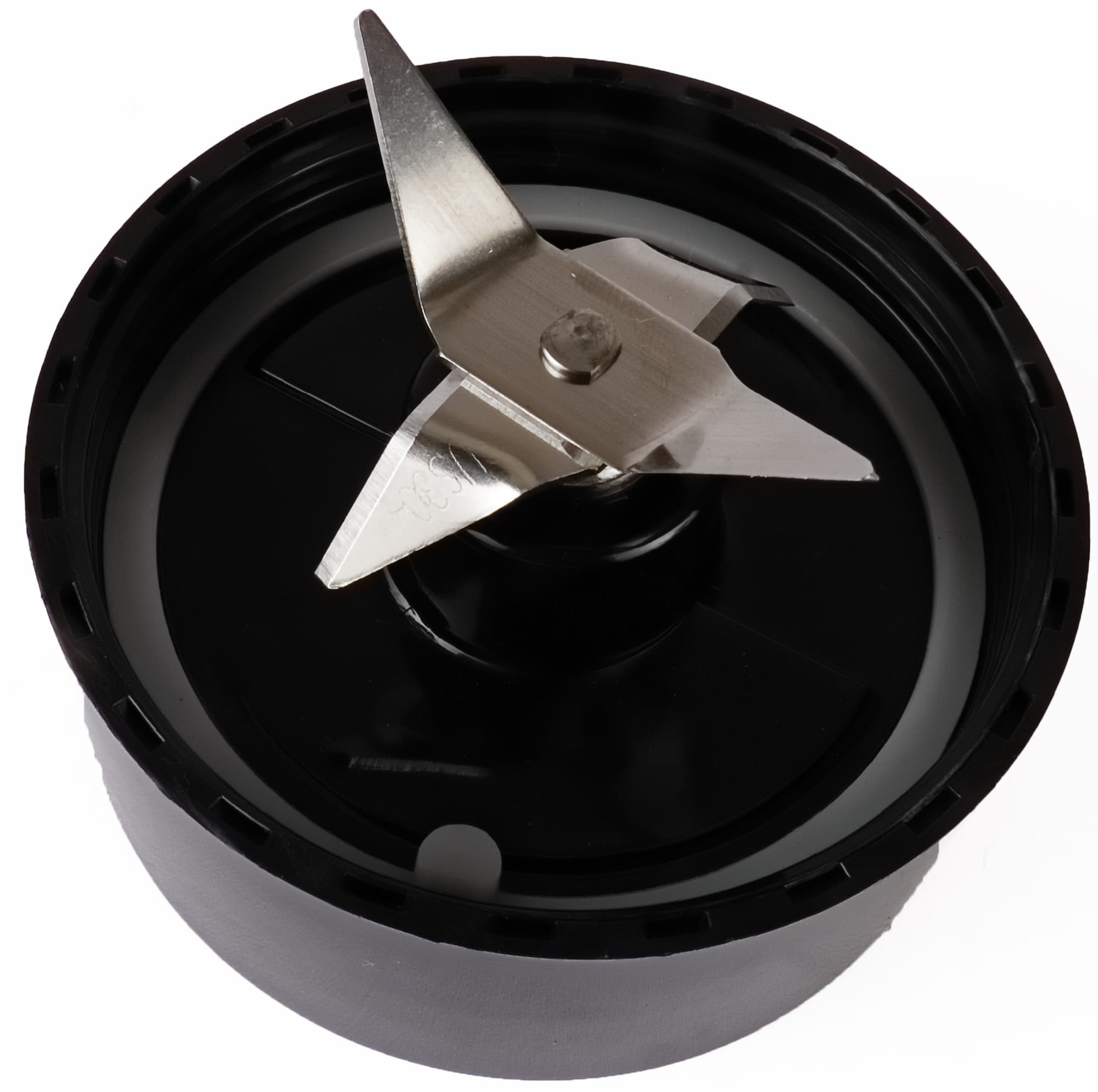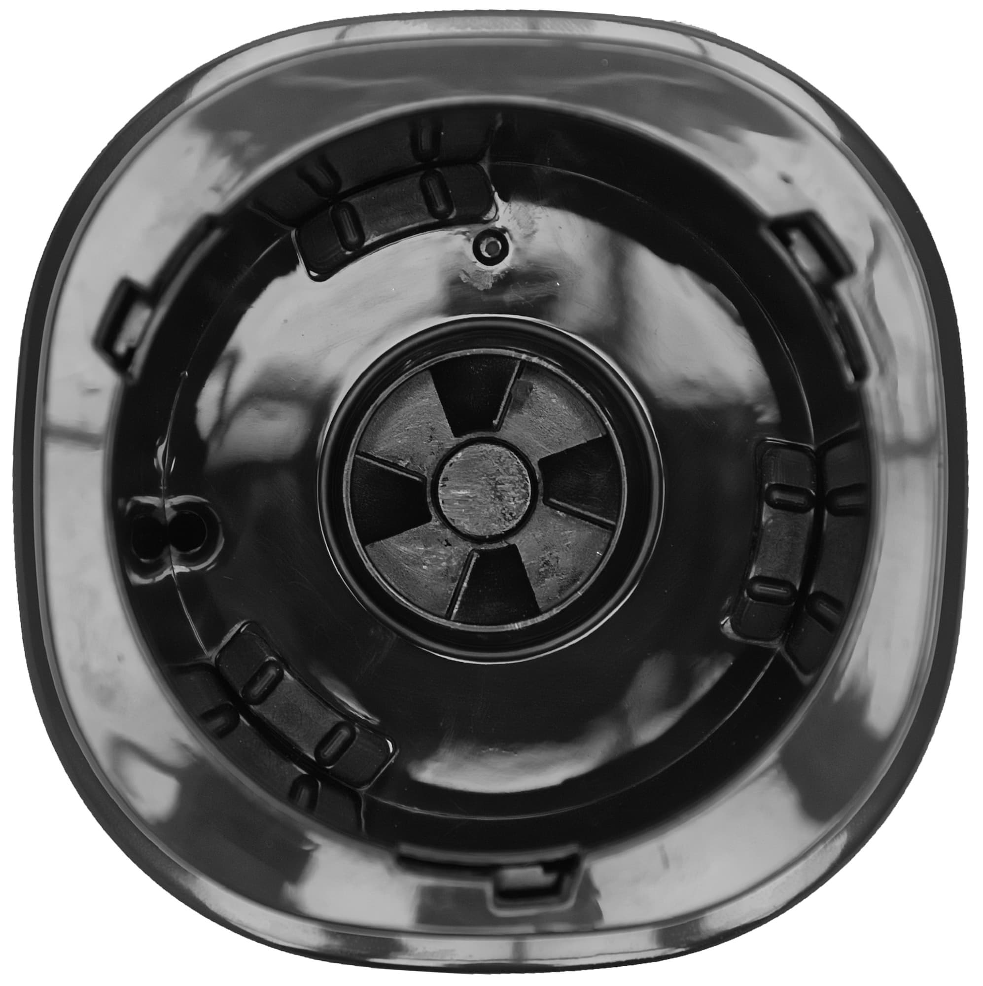 Сверху на моторном блоке находится выемка, в которую вставляется стакан, соединенный с ножами. Привычные четыре лепестка заточены с одной стороны и симметричны: два направлены вверх и два вниз. Блок с ножами сделан из черного глянцевого пластика с небольшими выступами на дне, которые помогают направлять жидкость в процессе работы. По краям от протечек страхует светло-серая прокладка, которую можно вытащить, чтобы промыть и просушить, а затем плотно вставить обратно.