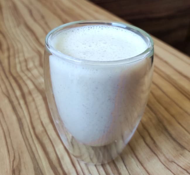 В течение минуты с небольшими паузами мы измельчали овсянку, так как наши хлопья были много плотнее тех, что разбухают за пару минут. Тем не менее, блендер блестяще справился с задачей: смузи получился питким, цвета крем-брюле и с красивой пенкой при переливании в чашку. Мелкие фрагменты хлопьев можно заметить и почувствовать, но они никак не мешали наслаждаться вкусным напитком.