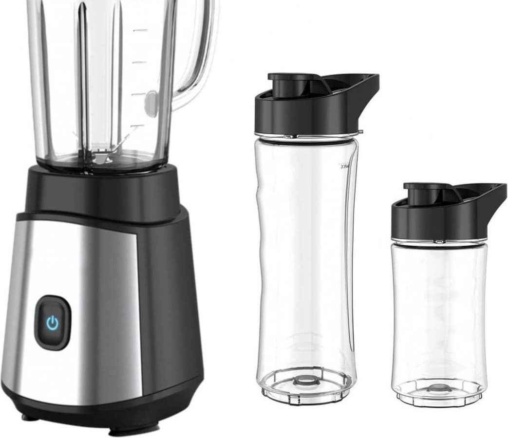 Блендер укомплектован стеклянным кувшином и двумя стаканами разного объема, изготовленными из тритана. Стаканы оснащены крышками с ручками для переноски и отверстиями для питья. Благодаря наличию дополнительного блока ножей, приготовить напиток можно прямо в индивидуальном спортивном стакане. Кстати, отметим небольшой вес стаканов, что делает их эксплуатацию комфортной — пользователю будет совсем необременительно взять приготовленный в стакане напиток с собой в тренажерный зал, на прогулку или работу.