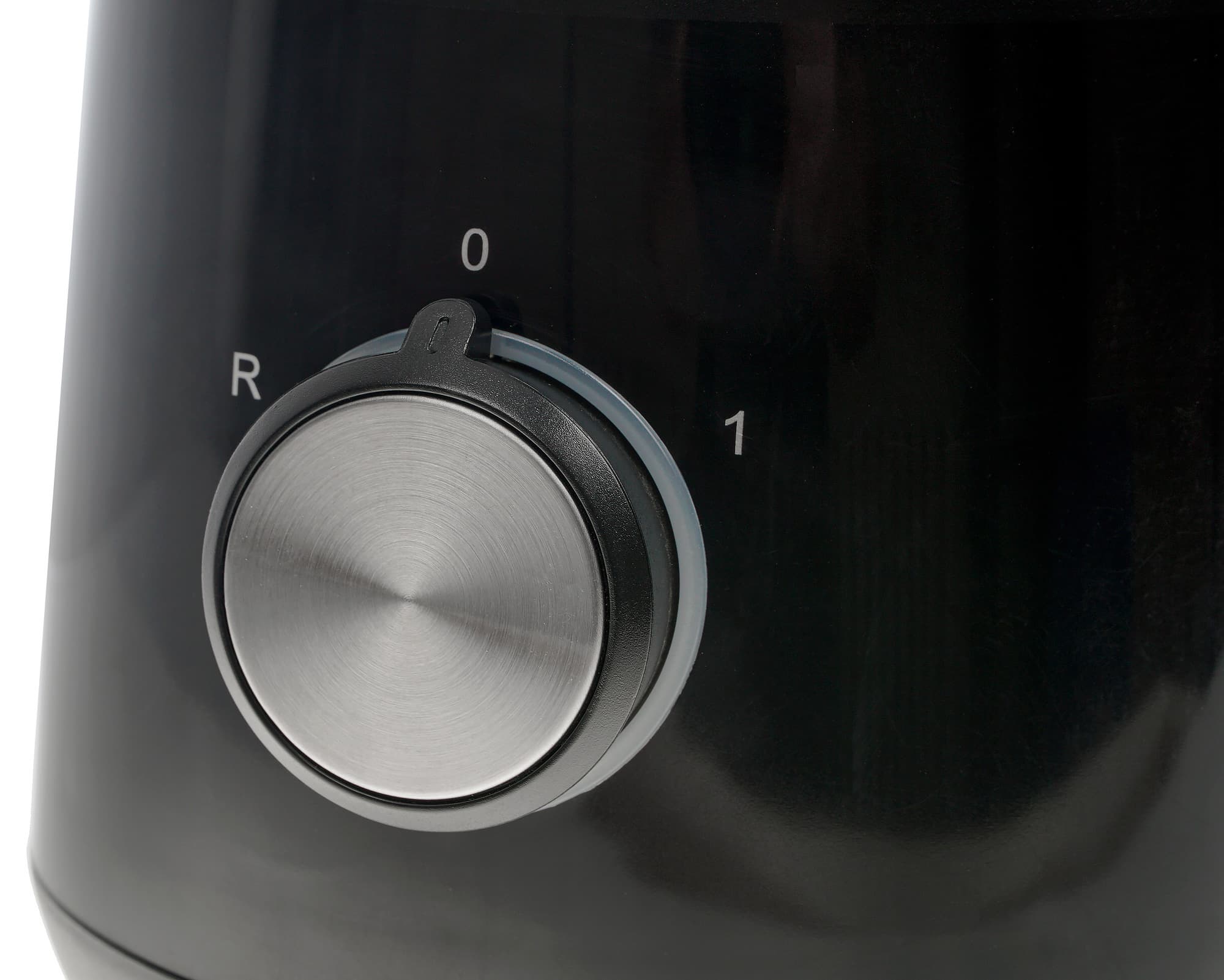 Новинка Gemlux GL-SJ335 имеет вид самый обычный и при этом по-своему элегантный: сочетание черного и прозрачного пластика, мягкие линии и компактность. В сборе достаточно высокая, зато не требующая много пространства на кухонной столешнице, она выглядит продуманной. Например, при очевидно бюджетном исполнении, на критически важном для для долгой и счастливой жизни прибора месте мы видим надежную силиконовую заглушку, которая защищает моторный блок от влаги. Ее можно отодвинуть для лучшей очистки корпуса после использования прибора. Традиционно из чаши корпуса одно отверстие предназначено для избавления от жмыха, а в другое подается сок. При желании можно закрыть второе отверстие резиновой заглушкой — мы убедились, что тогда наружу не просочится ни капли.