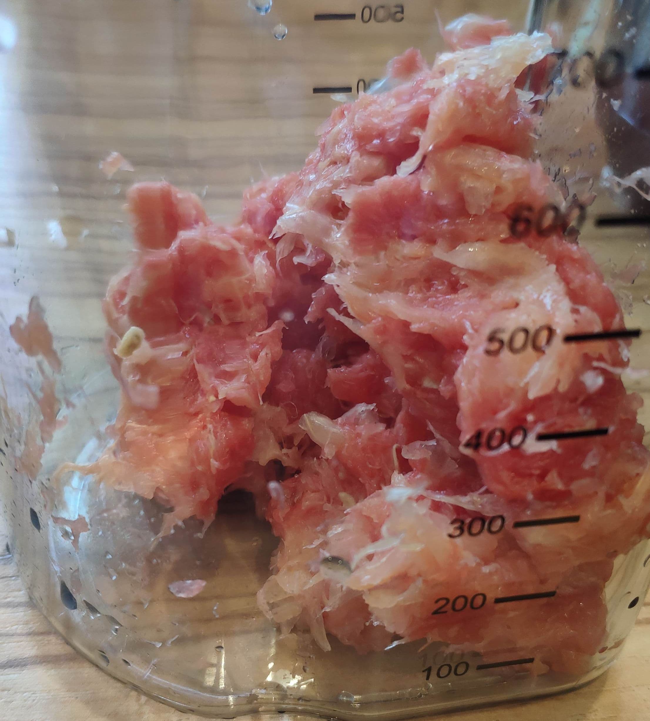 За 2 минуты мы получили 721 г вкусного сока и относительно сухой жмых (насколько он может быть таковым у грейпфрутов). Не самый высокий результат, учитывая сочность продукта, зато быстрый.