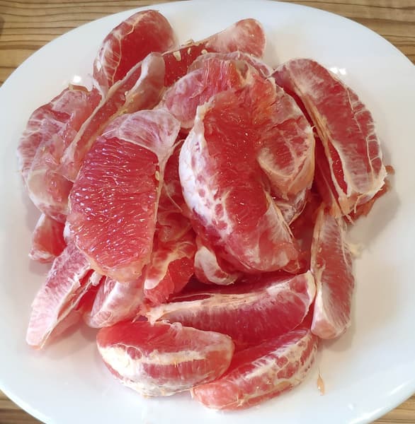 Дольки грейпфрутов были несколько больше по размеру, чем входное отверстие, а резать их и терять сок мы не хотели, поэтому просто воспользовались их мягкостью и проталкивали с небольшим давлением.
