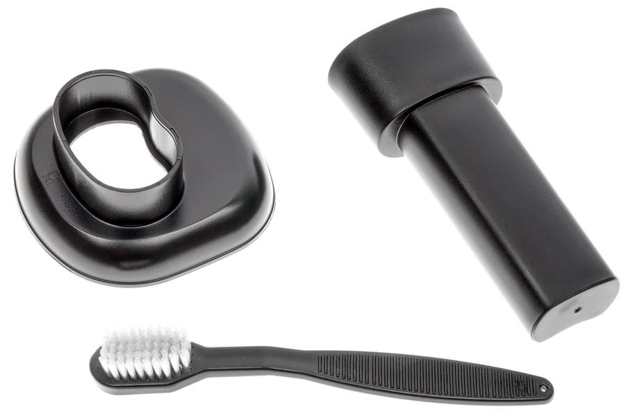 Шнек сделан из прочного пластика, в нижней части круг зубцов предназначен для крепления к вращающим зубцам моторного блока. Фильтр-корзина и держатель выглядят классически, отверстия в стенках фильтра очень мелкие, что позволяет получать сок без ощутимого присутствия мякоти. Щетка имеет длинную ручку и щетину с двух сторон, что внушает надежду на легкую очистку деталей.