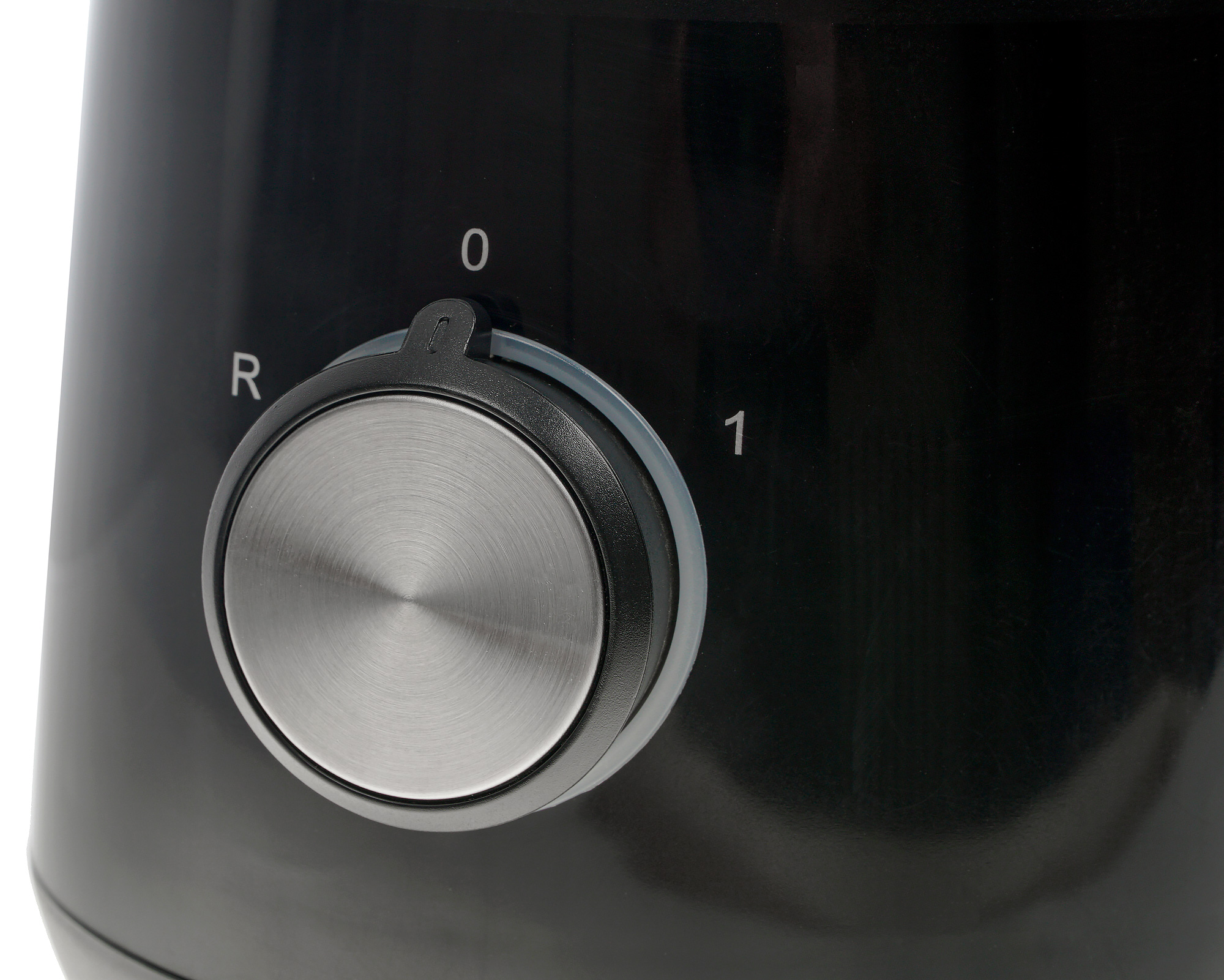 Моторный блок из черного матового пластика имеет форму зауженного кверху цилиндра, на котором выделяется серебристый поворотный регулятор. Всего есть три положения: 0 по умолчанию, I (запуск работы) при повороте по часовой стрелке и R (реверс) при повороте против часовой стрелки.