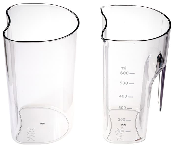 Стакан для мякоти сделан из того же прозрачного пластика и по форме похож на стакан для сока. Однако у него нет ни носиков, ни ручки, ни шкалы объема — просто емкость сложной формы, вогнутой стороной плотно примыкающая к выпуклой стенке моторного блока.