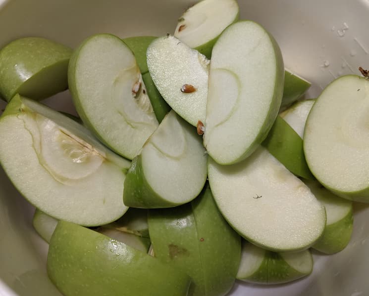 Килограмм подготовленных зеленых яблок сорта «Гренни Смит» дал на выходе аж 758 граммов сока за две с половиной (ну, чуть больше) минуты. Особо приятно, что ни кожура, ни семечки, ни жесткие присеменники не застревали в фильтре.