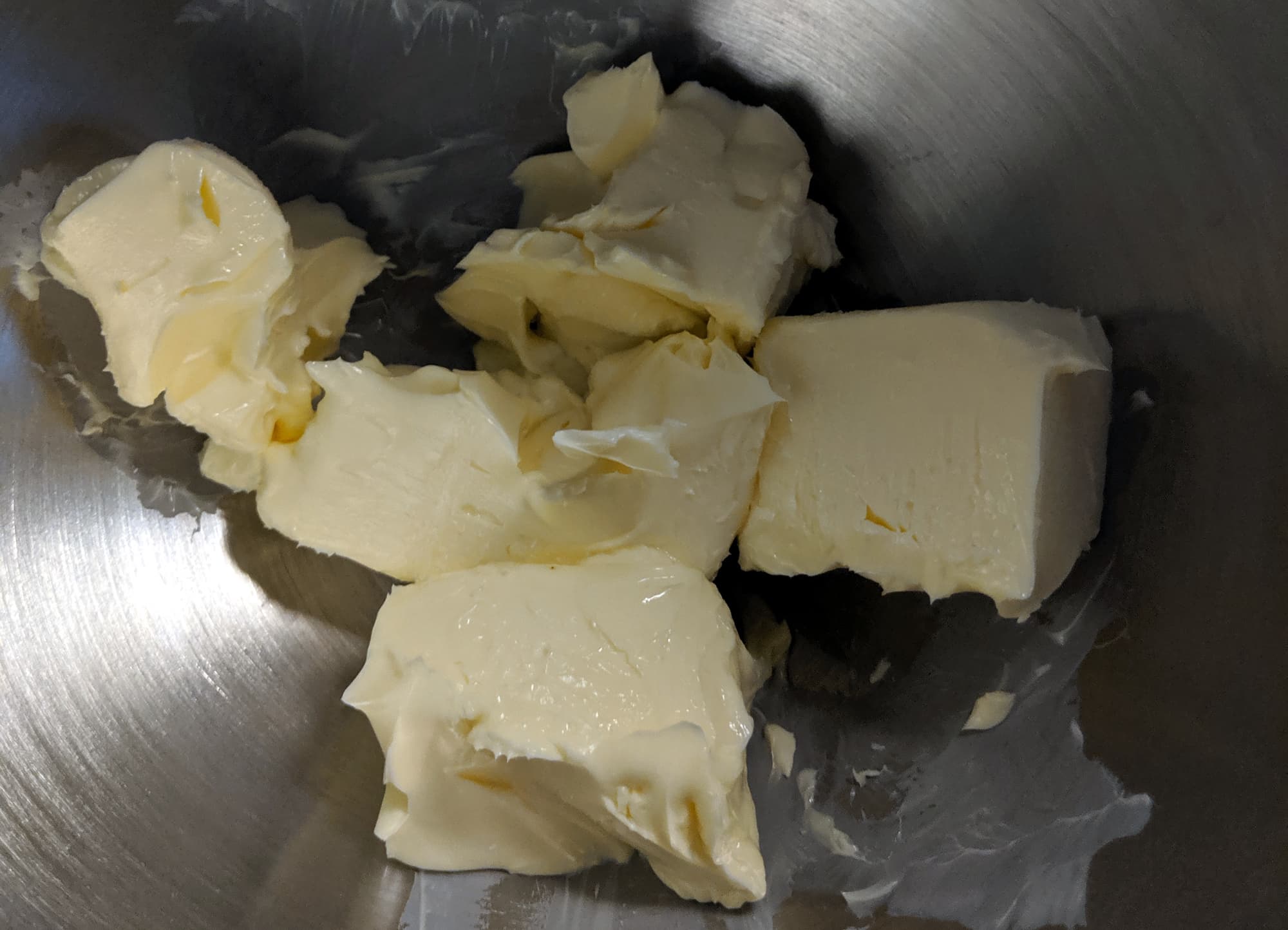 Мы взяли стандартную пачку сливочного масла (180 граммов) и стандартную упаковку сгущенки (360 граммов). И то, и другое оставили при комнатной температуре до тех пор, пока масло не стало мягким. После чего масло в чаше разделили на несколько частей, добавили сгущенное молоко и начали взбивать венчиком со второй скорости. Через две минуты масло разошлось уже достаточно, чтобы скорость можно было плавно повысить до пятой и взбивать дальше именно на ней. Результатом стал гладкий и сладкий крем.