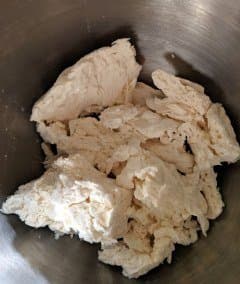 Перемешивание сухих и полусухих компонентов планетарный миксер выполнил с блеском и практически играючи. А вот добавление воды в тесто заставило его работать на пределе сил, горько жалуясь на жизнь. Защитная крышка на крюке болталась и стучала. Так наш миксер проработал 6 минут без остановки и в конце концов выдал нам однородное тесто, которое, впрочем, нам пришлось немного довести до правильной консистенции руками.