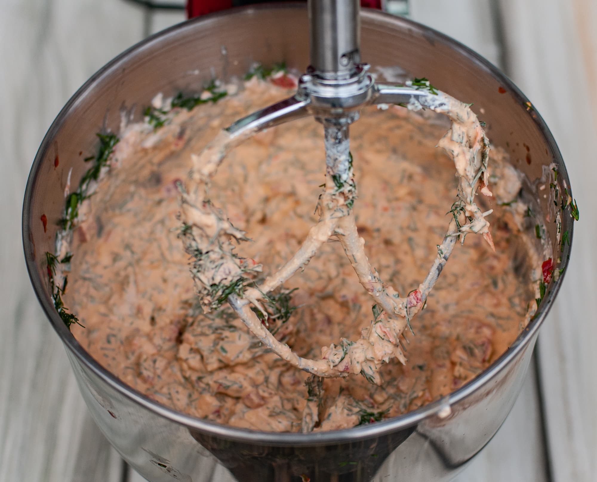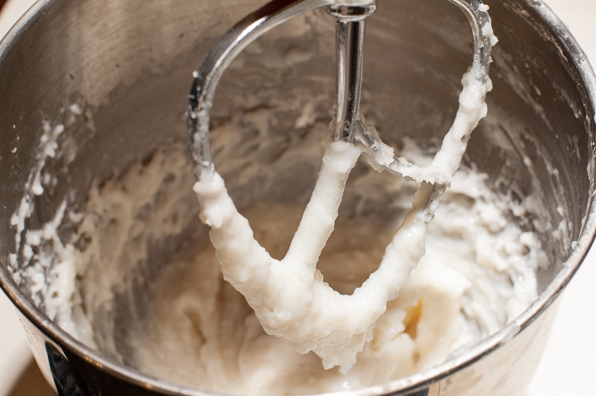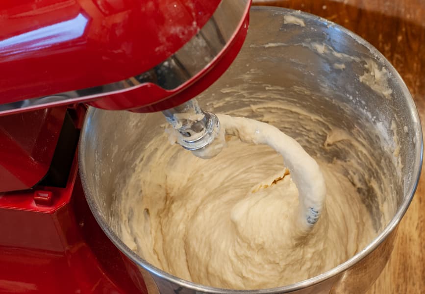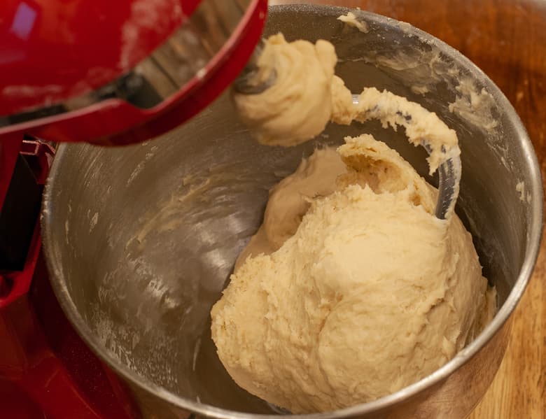 В миксере, с помощью крюка для теста, мы вымесили все ингредиенты до однородного состояния.
