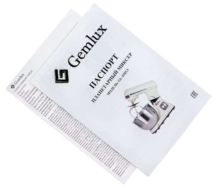 Gemlux GL-SM5.5 — небольшой, удобный в эксплуатации планетарный миксер для домашнего использования. Он значительно сокращает время приготовления некоторых блюд, так как может работать автономно, справляется с тугим тестом (5:3), неплохо взбивает белки и сливки. Вибрации при работе небольшие, а вот уровень шума высокий для аналогичных устройств. Внутреннее устройство, наличие плавного запуска и невысокое потребление при заявленной мощности позволяют надеяться, что прибор прослужит очень долго, если не нарушать правила эксплуатации. Насадки удобно надеваются и меняются в процессе работы, чаша из нержавеющей стали надежно крепится к базе.
