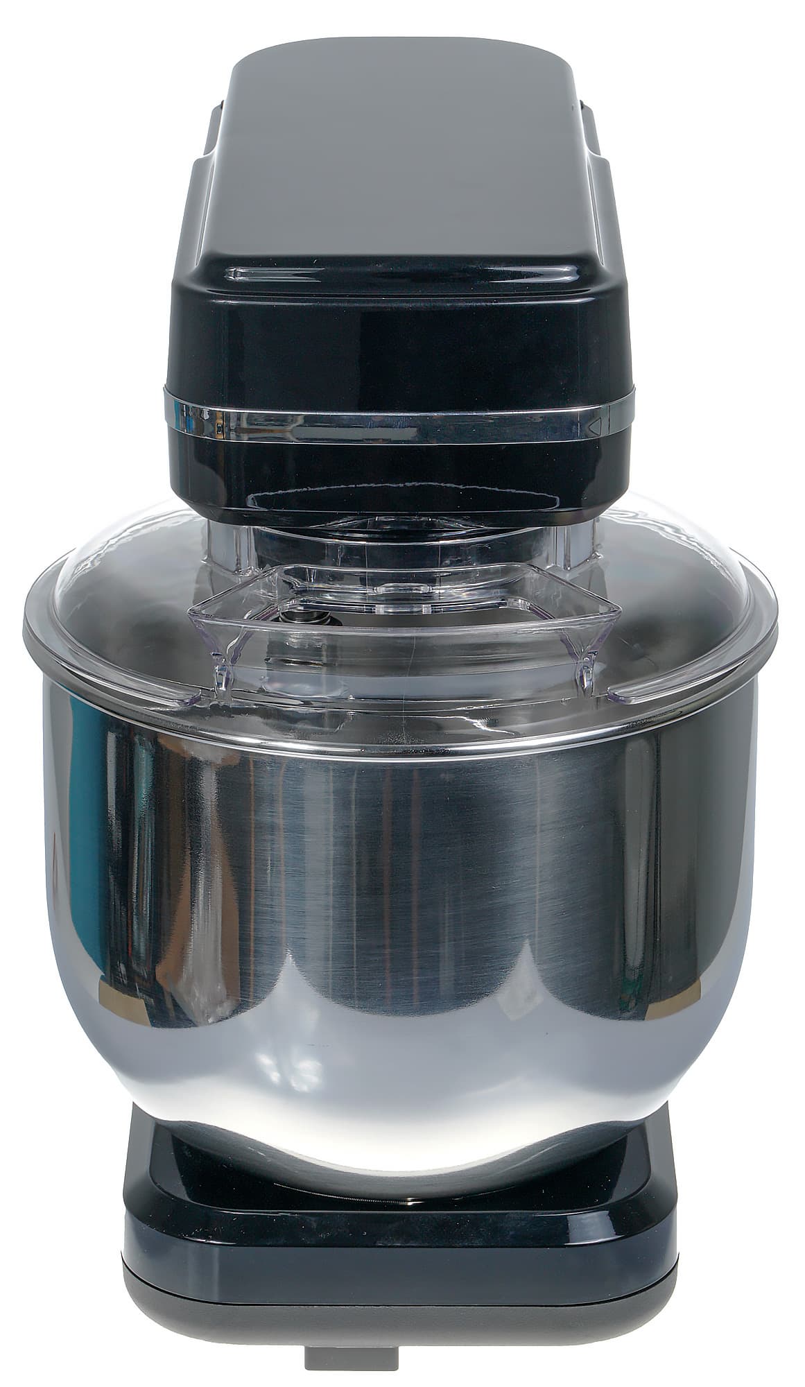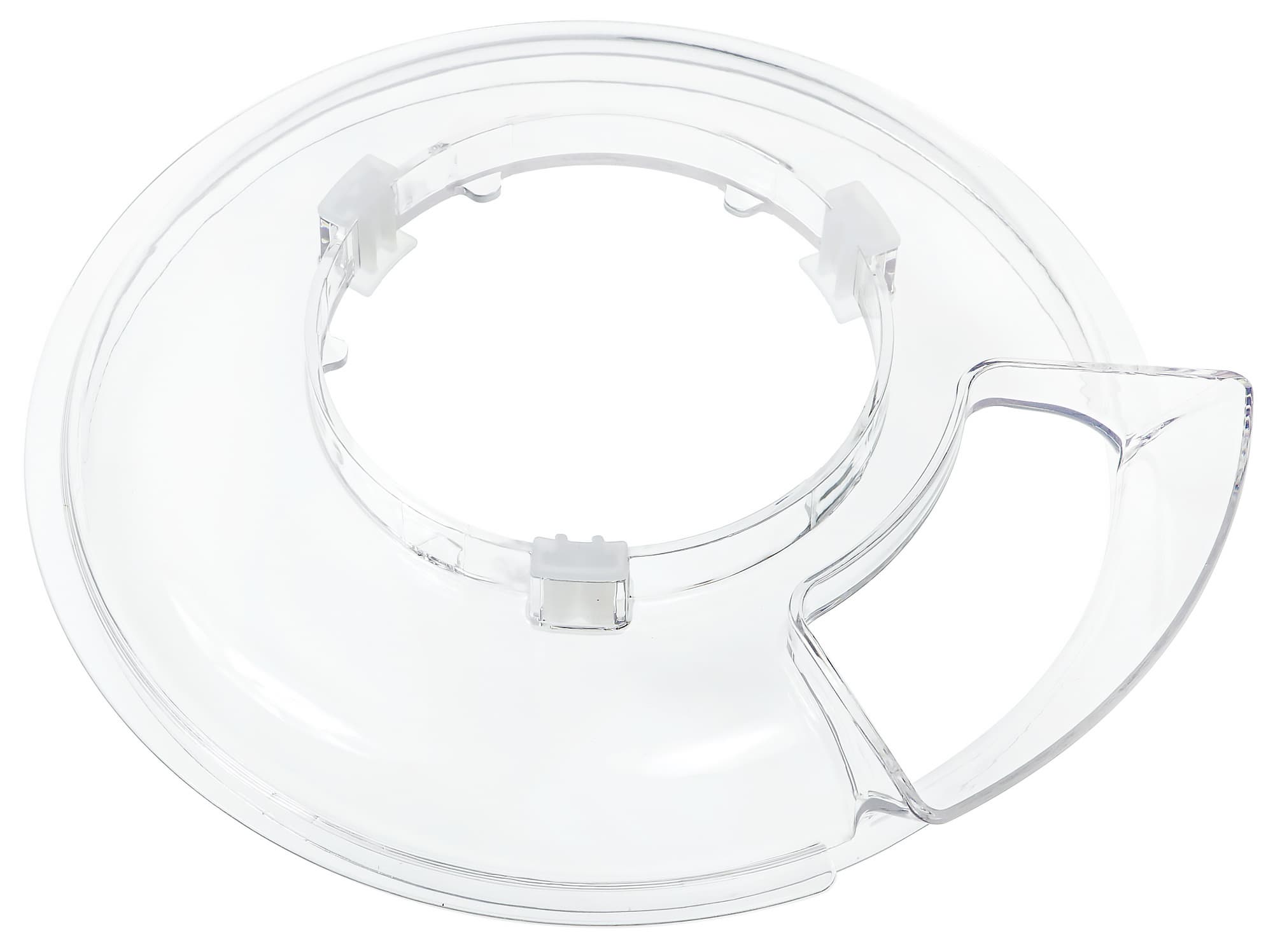 Дежа может быть накрыта защитной крышкой. Причем крышку можно закрепить на откидной головке моторного отсека и она не будет мешать при действиях с тестом или иным продуктом. Деталь изготовлена из прозрачного пластика, что позволит наблюдать за процессом взбивания или замеса, и снабжена отверстием для добавления ингредиентов. Размеры отверстия примерно 10×4 см — нам кажется, этого будет достаточно, чтобы добавить сыпучие продукты или влить жидкие прямо по ходу работы миксера.