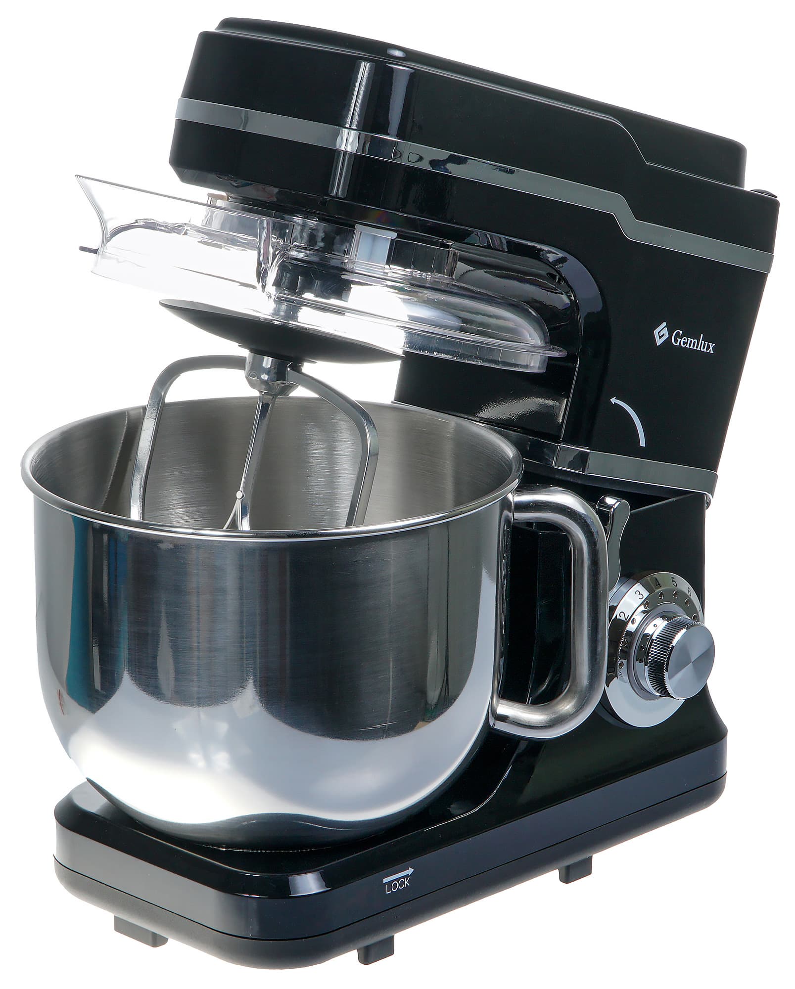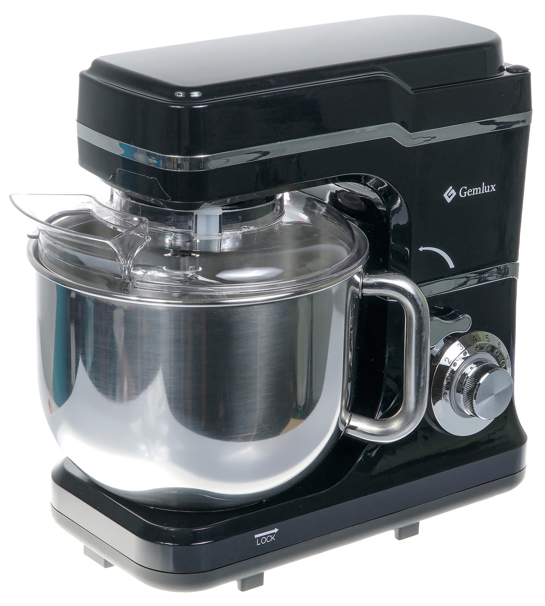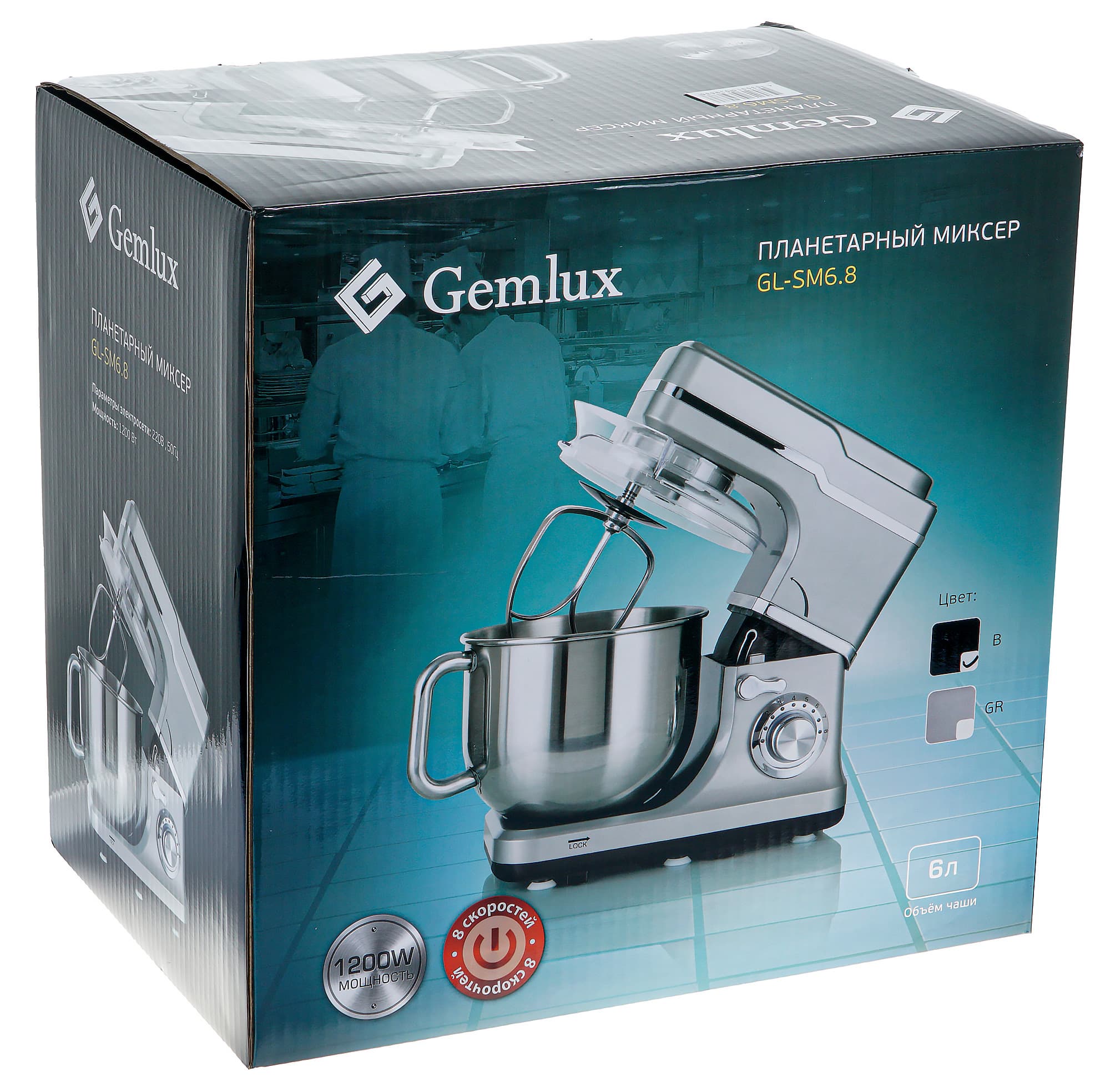 Планетарный миксер Gemlux GL-SM6.8 выпускается в двух цветах — черном и серебристом. Прибор укомплектован вместительной чашей объемом 6 л, отличается высокой мощностью мотора и регулируемой скоростью вращения насадок. Напомним, что планетарным устройство называется потому, что насадка вращается не только по окружности дежи, но и вокруг собственной оси, что значительно повышает эффективность взбивания и перемешивания.