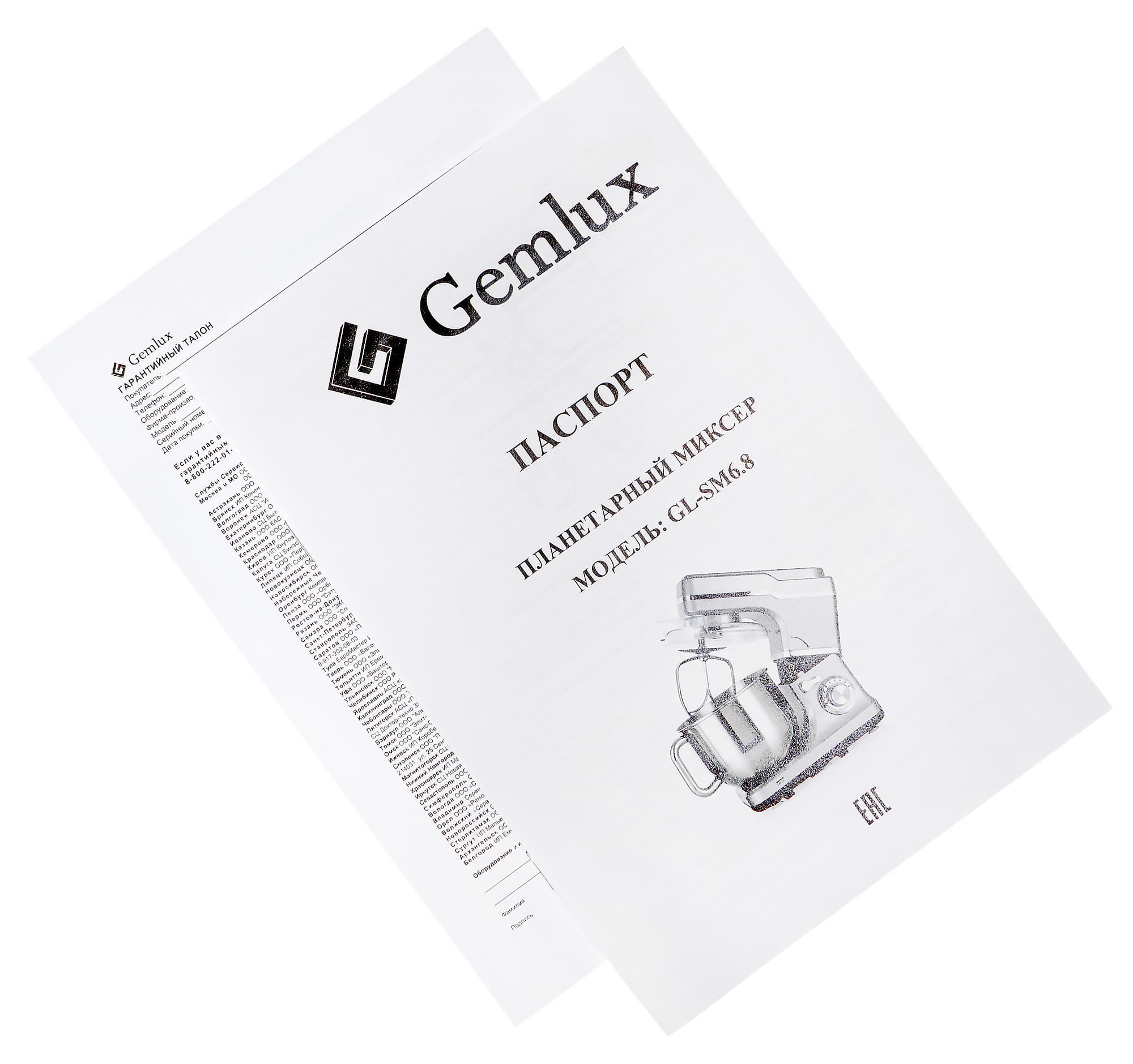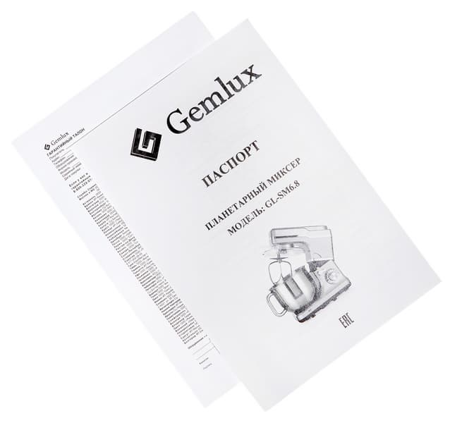 Упаковка планетарного миксера Gemlux GL-SM6.8 сделана из плотного гофрированного картона и оформлена в неброском и достаточно благородном фирменном стиле Gemlux. Ознакомившись с визуальной и текстовой информацией, размещенной на коробке, пользователь составит первое впечатление о приборе, узнает его технические характеристики и достоинства. Ручкой или иным приспособлением для переноски коробка не снабжена.
