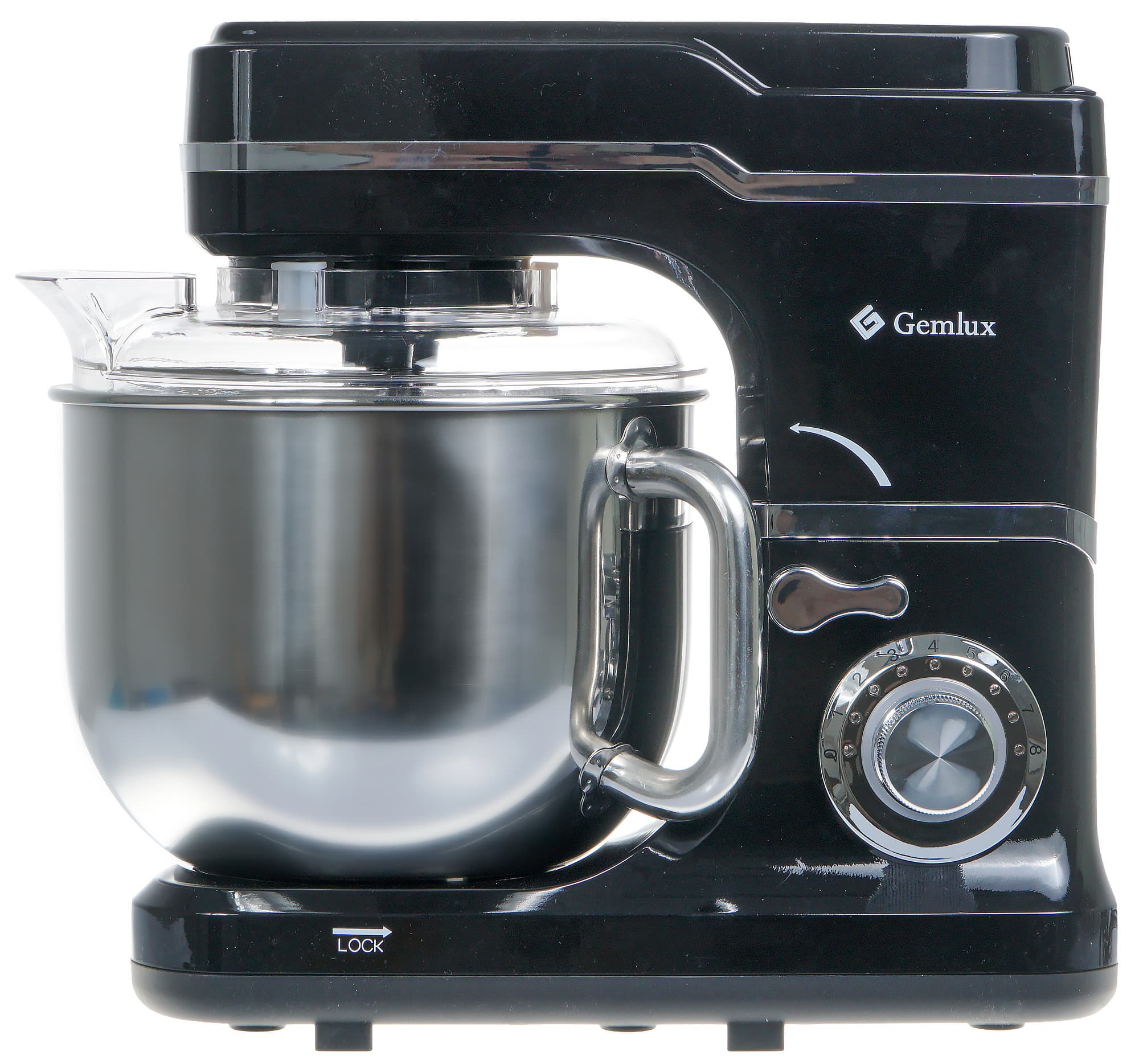 Визуальный осмотр планетарного миксера Gemlux GL-SM6.8 оставил у нас хорошие впечатления. Несложный в подготовке к работе прибор, конструкцию можно назвать простой, направление вращения деталей при креплении или надавливании на рычаги интуитивно понятно, на крайний случай, всегда можно воспользоваться подсказками, которые нанесены прямо на корпусе.