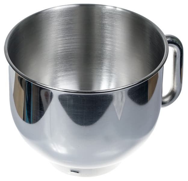Дежа с толстыми стенками изготовлена из нержавеющей стали, снабжена удобной ручкой и выступом на дне, который позволит перерабатывать малые объемы продуктов. Вообще же, объем чаши в 6 л дает возможность приготовить, например, ком теста весом куда больше килограмма. Впрочем, к этому вопросу мы вернемся во время тестирования.