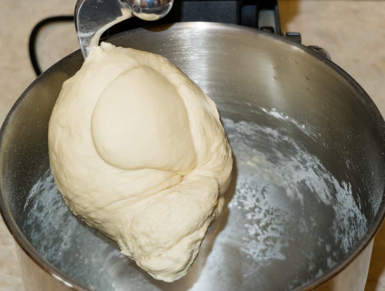 Чтобы процесс шел быстрее, следует начать с замеса более жидкого теста, а затем понемногу добавлять муку, чтобы добиться нужной консистенции теста. Ничего неожиданного — вручную тесто именно так и делается. К тому же мука может быть разной степени влажности, что тоже влияет на необходимое количество воды.